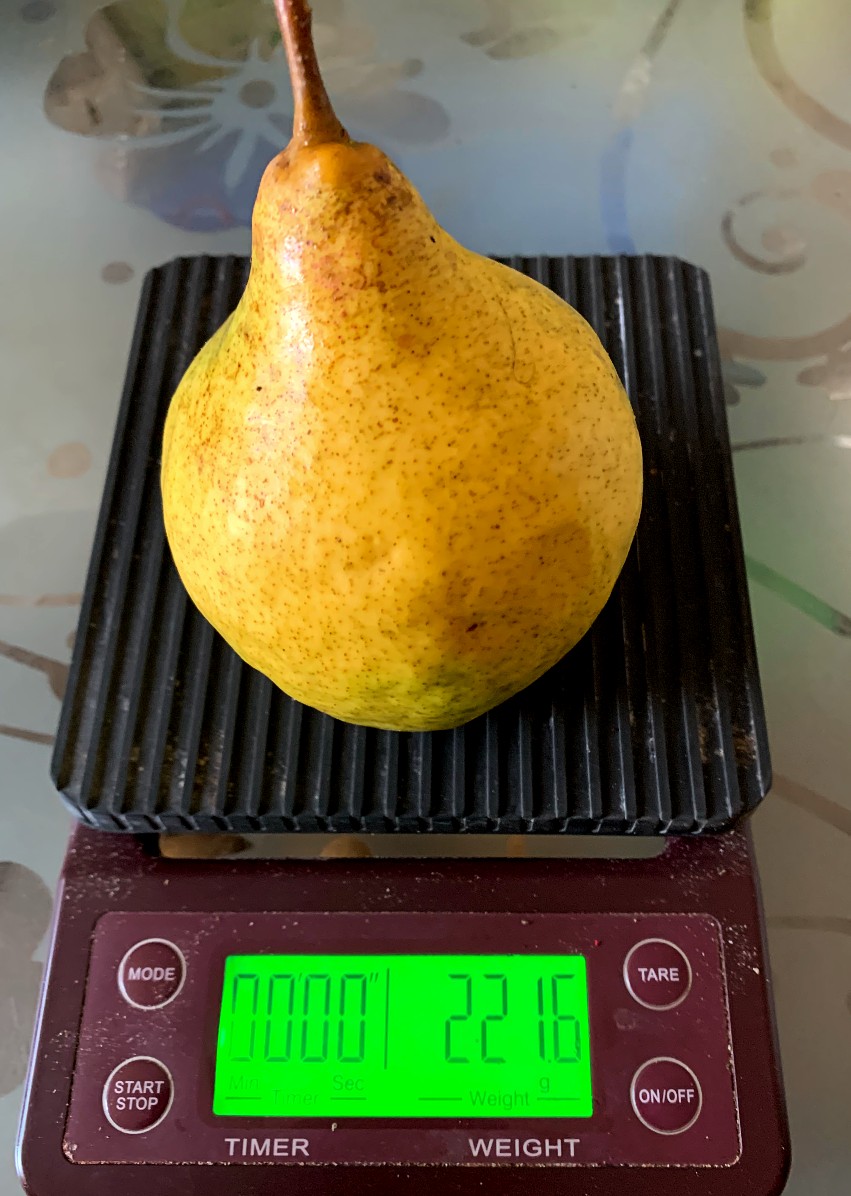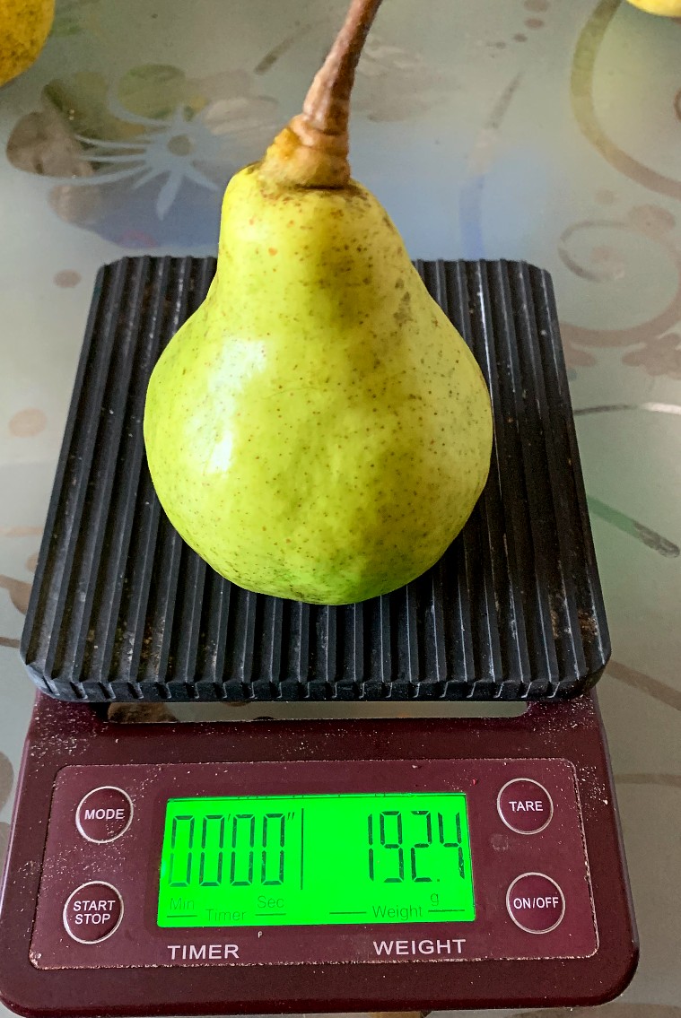 Иногда звучат утверждения, что Августовская Роса мало хранится, быстро перезревает. Решил проверить максимальные сроки лежкости в хороших условиях. Начал снимать груши в состоянии технической спелости примерно месяц назад. Те, что не хотели легко отрываться, оставлял на дереве. Остальные сразу убирал в холодильный шкаф, где они хранились при температуре 0...+2 С. На текущий момент груши в отличном состоянии. Мякоть белая, маслянистая, очень сочная, медовая с легкой кислинкой. Думаю, что в таких условиях ещё минимум пару недель могут спокойно полежать.