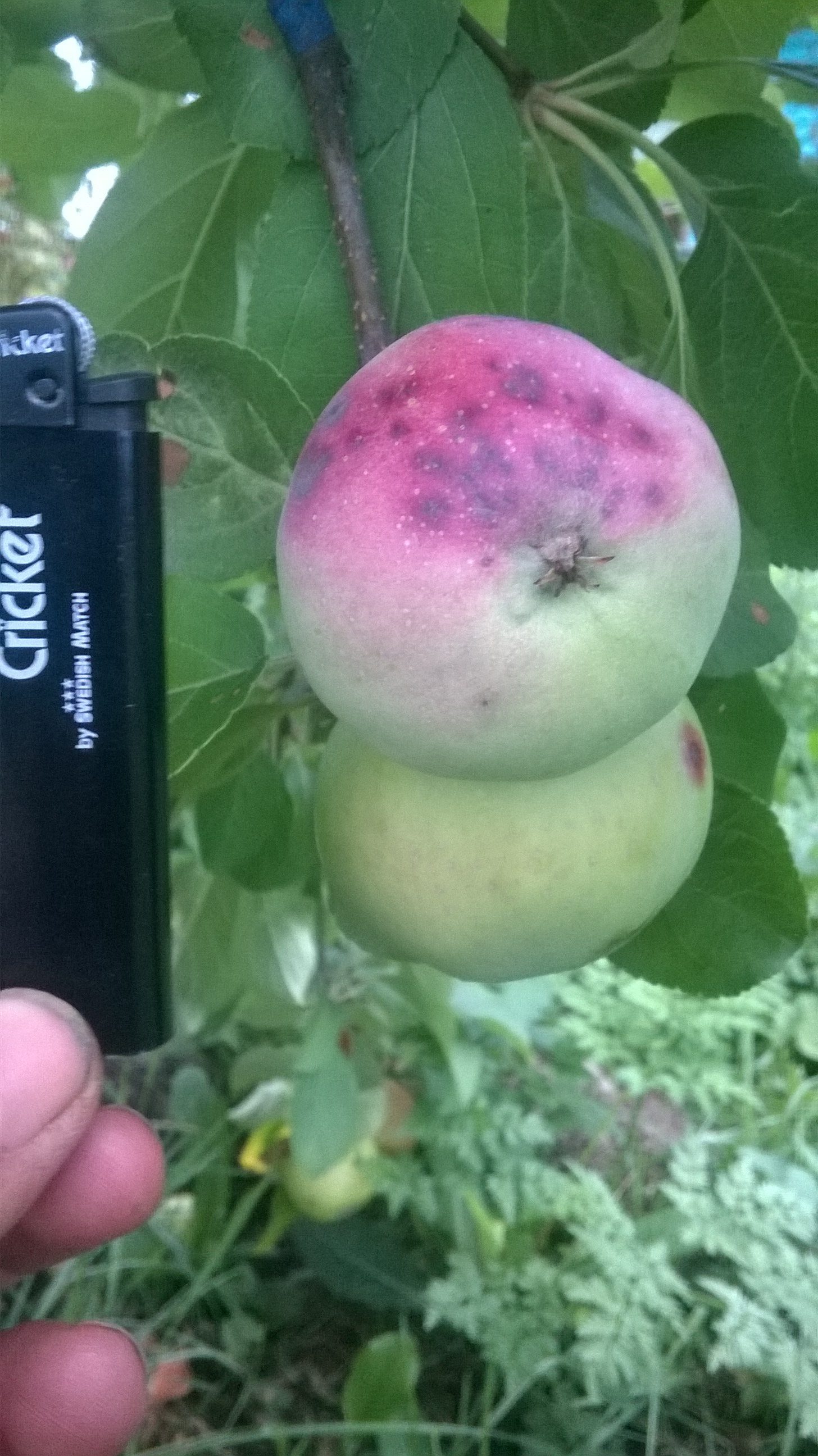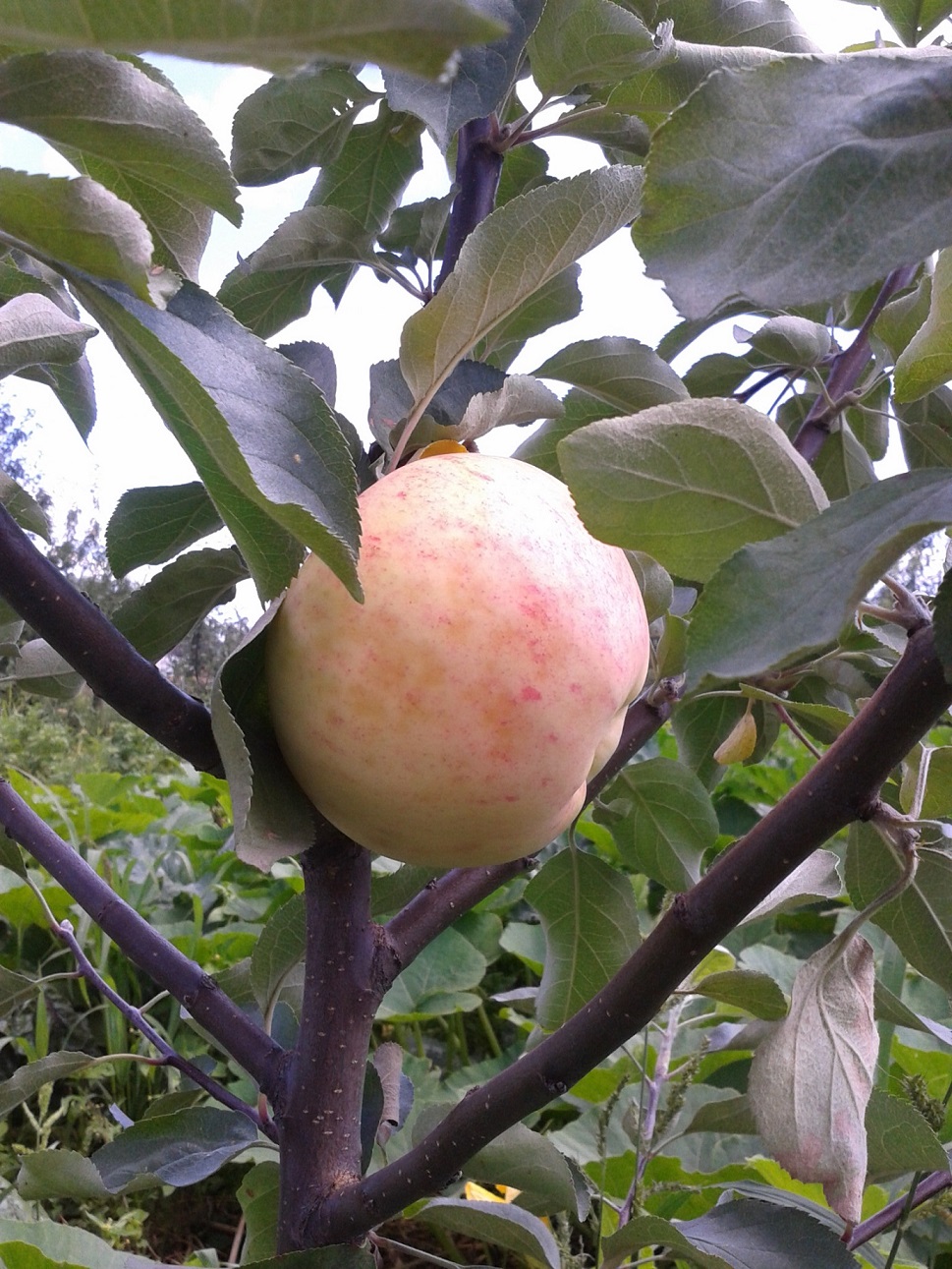 У Июльского Черненко имеется шов как у Папировки, форма тоже похожая, окраска серо зелёная, румянец малиновый равномерный без белых точек, на солнечной стороне может полностью окрашиваться в малиновый цвет, вкус с приятной необычной кислинкой, яблоко вкусное. У меня есть старые фото с большого дерева, дерево давно погибло, но привил в молодую крону пару веток. Вот эти фото, но тут яблоки последние, с верхушки и в целом они редко бывают полностью окрашены - обычно только румянец, в основном все осыпаются и червивые.Антон-Mālus писал(а): ↑03.08.2018, 00:08Окрашиваются буквально за пару дней а до этого висят зелёные. Питомниковода у которого брал саженец берет черенки из старого колхозного сада.