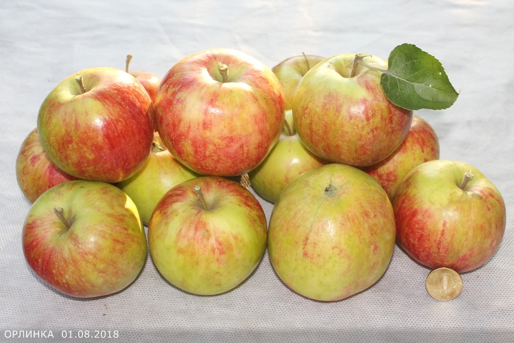 Вчера оборвал Орлинку. Яблоки не успели окраситься, но появился налив, мякоть начала рыхлеть. Сорт не плохой, но в предыдущие годы почти все плоды сгнивали на дереве не дождавшись сбора. Этот год первый, когда ни одно яблоко не повредилось, хотя в кроне этого дерева Старк Эрлиест весь сгнил, но в другой соседней кроне Старк Эрлиест вполне приличные плоды уродил.