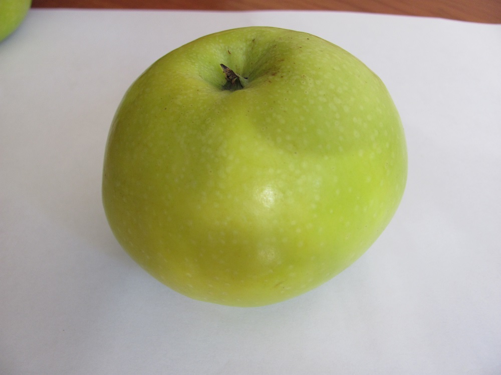 Плоды среднего размера (средняя масса 120 г.), неодномерные, форма варьирует от округлой до округло-овальной. Кожица плодов плотная, гладкая. Основная окраска зеленая, при полной зрелости – зеленовато-желтая. Покровная – отсутствует или проявляется в виде красно-бурого размытого румянца на солнечной стороне. По всему плоду имеются подкожные точки. Мякоть зеленоватая, плотная, сочная, мелкозернистая, кисло-сладкого вкуса. Съемная зрелость в среднем наступает 27 сентября. Плоды хранятся до мая-июня, не теряя тургора.