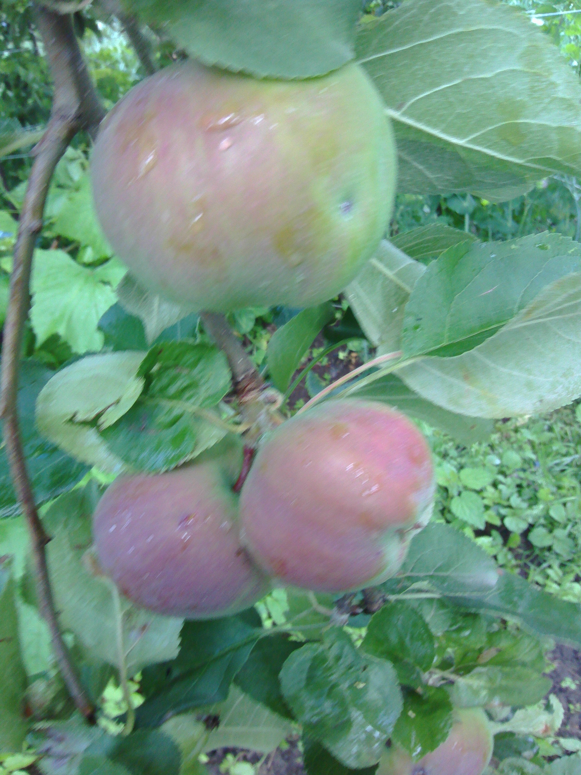 Патриот реабилитирован. Картошкой оказались яблоки-гиганты. Яблоки в нормальной консистенции мякоти (те, что помельче и позеленее) оказались вкусными - кисло-сладкие с небольшим превышением сладости над кислотой.