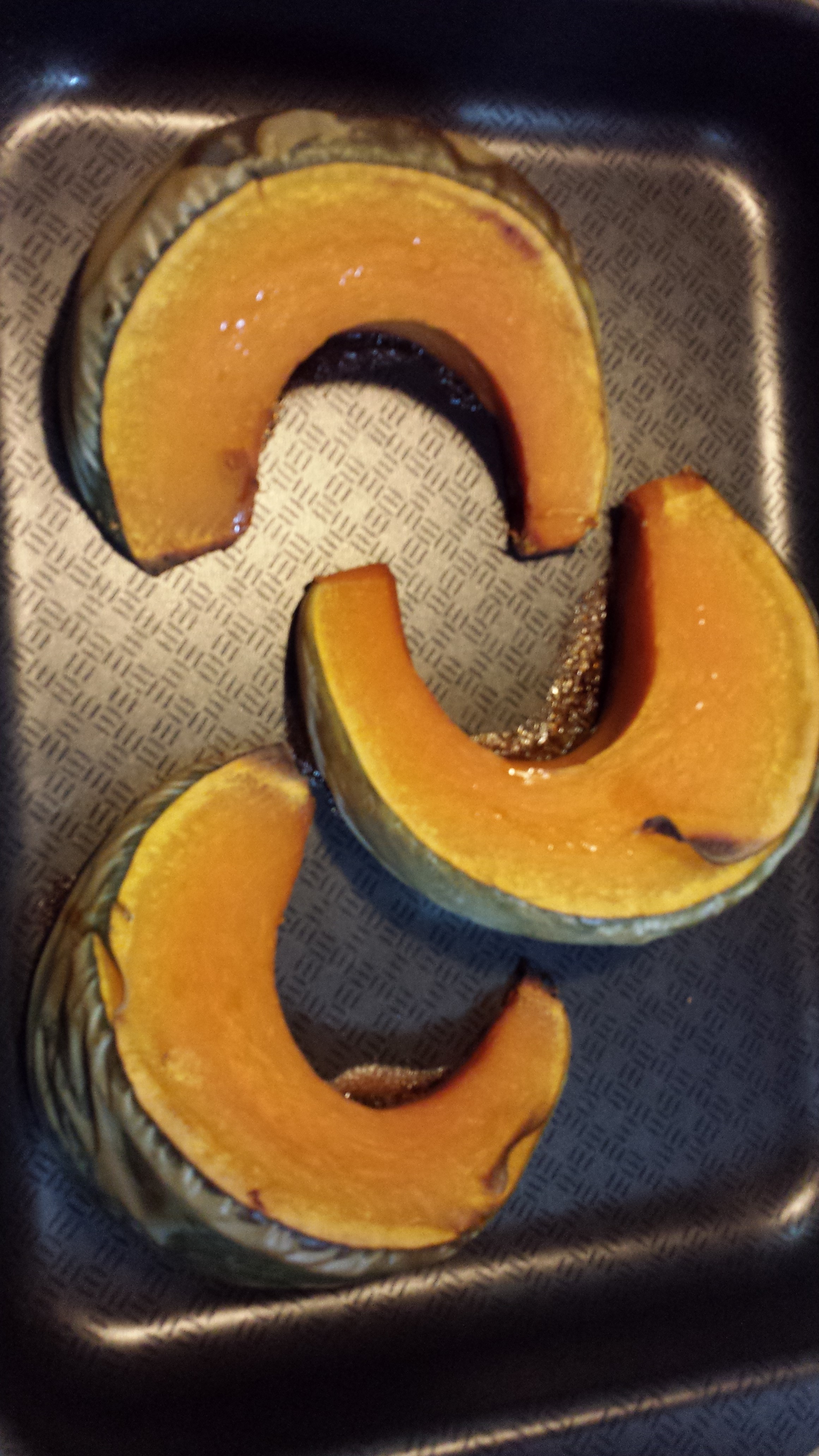 Кора очень твердая, чистить невозможно, поэтому резала на сегменты и в духовку,чтобы она размягчалась и потом в морозилку для каш.