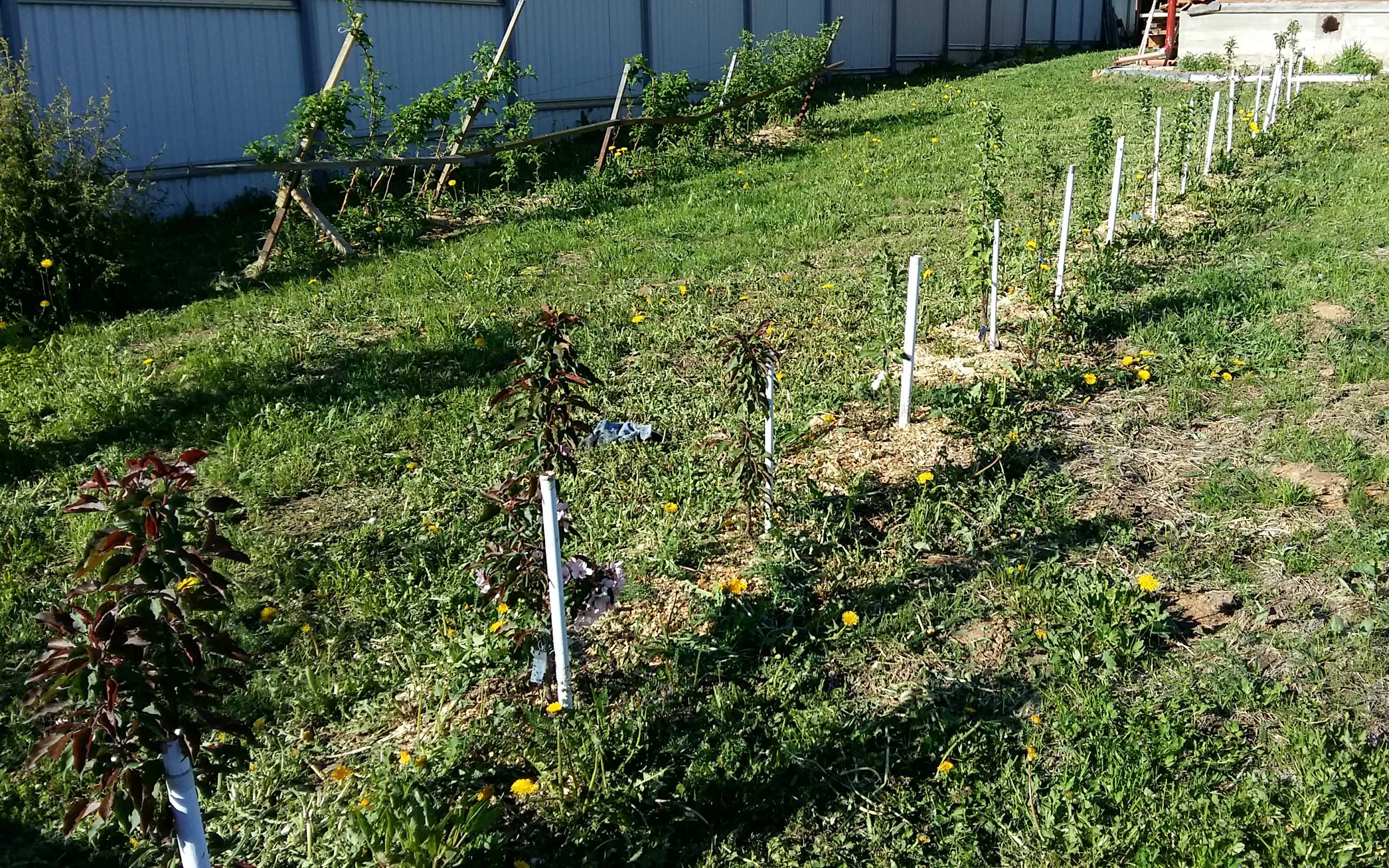 Я так понимаю - антоциановые могли бы появиться в случае опыления сортами Роялти и Прерифайер? Видимо этого не произошло. Да, в этом же ряду (где Ваши саженцы), ближе к дому, две номерные формы из Вологды (зеленолистные). Плодоношения пока не было.