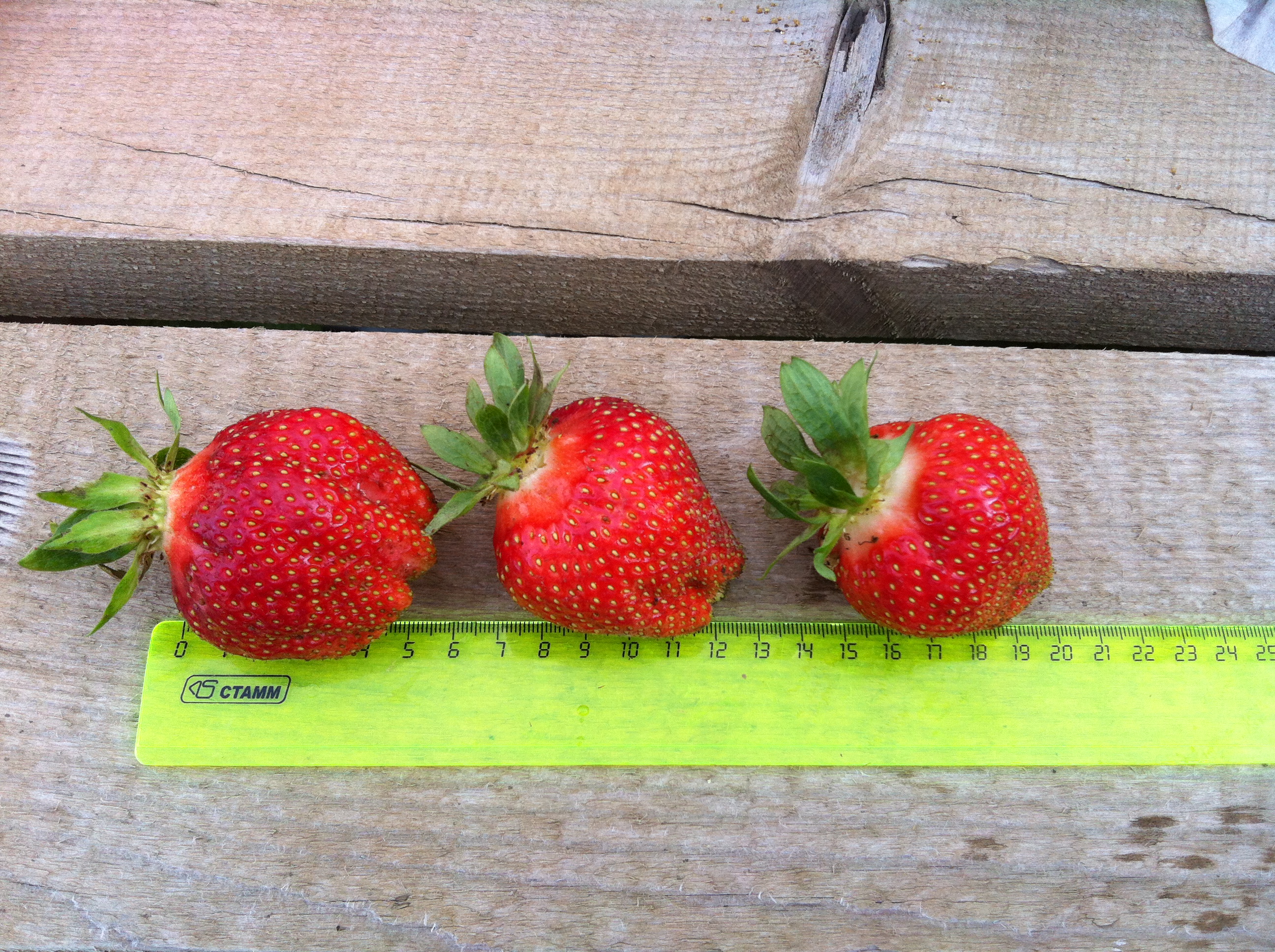 Сегодня при сборе ягод обнаружился вот такой экземпляр в посадках 4 годичной давности.Сорт не известен,дала усы знакомая,она то же сорт не знает.Конечно не много не дозрела,но сладкая и ароматная.Поспевают не одномерно,сначала один бок,потом другой,и хоть год дождливый и загущенная посадка,гнилых ягод нет.Сама ягода с одной стороны плоская,с другой с гранями в виде треугольника.