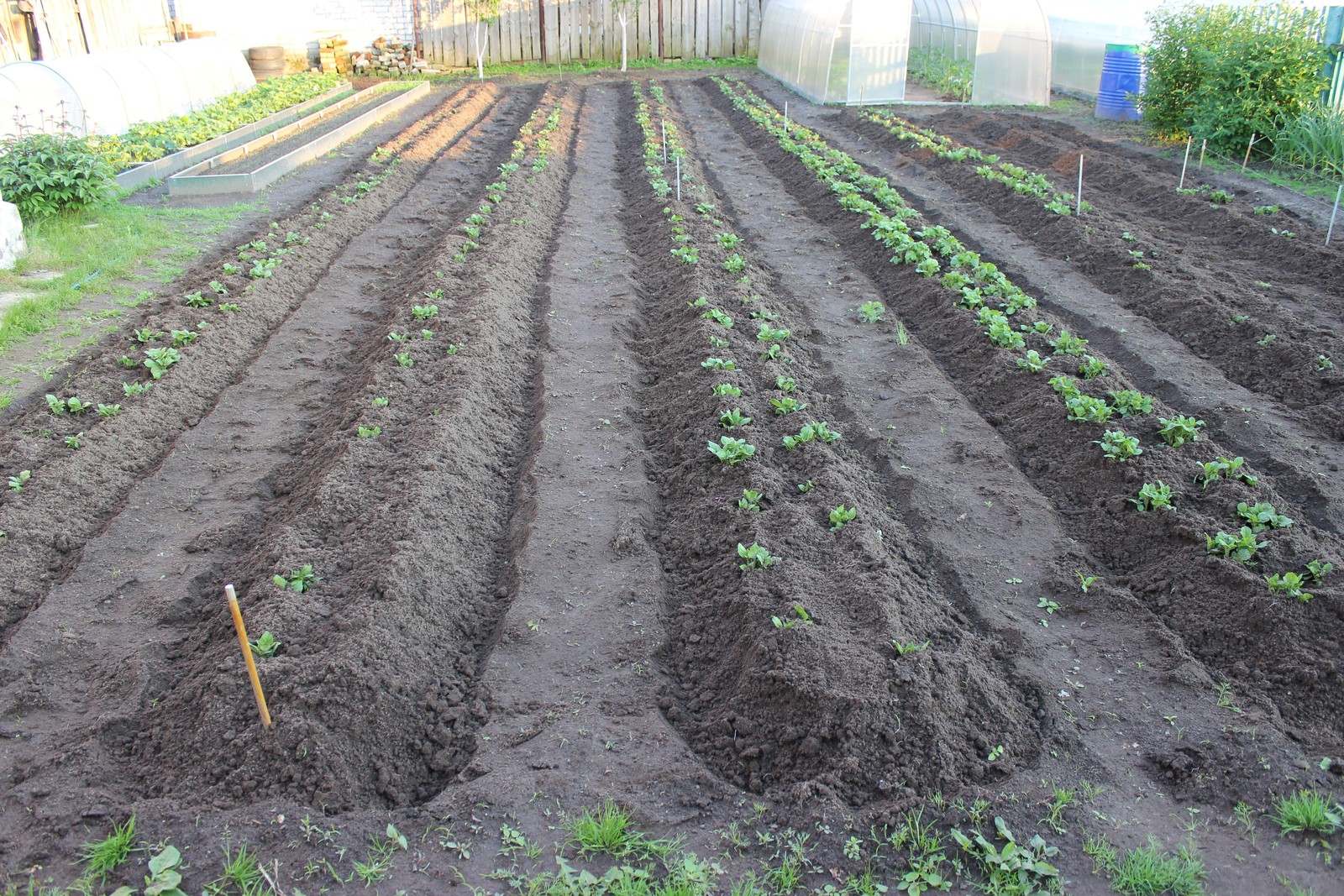 В этом году картошка начинает уже всходить,была посажена 8 мая.В прошлом при посадке 10 мая начинала всходить 28 мая.Погода самое то для всходов,тепло и дожди.На удивление при равном проращивании первый всходит Ильинский.