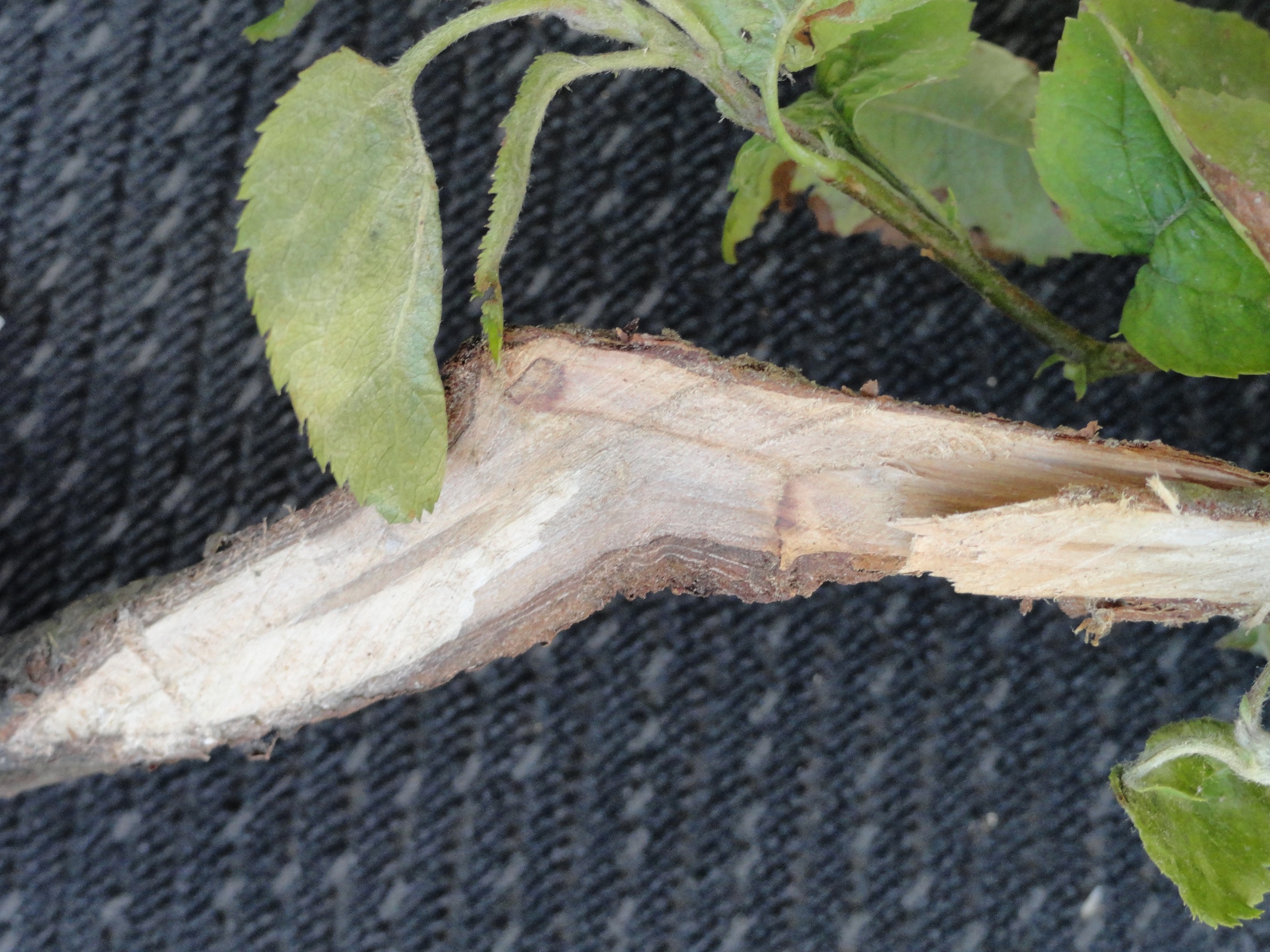 Одна из проверочных прививок сорта груши Осенняя Яковлева в крону, весной прошлого года, от известной фирмы по продаже саженцев и черенков: