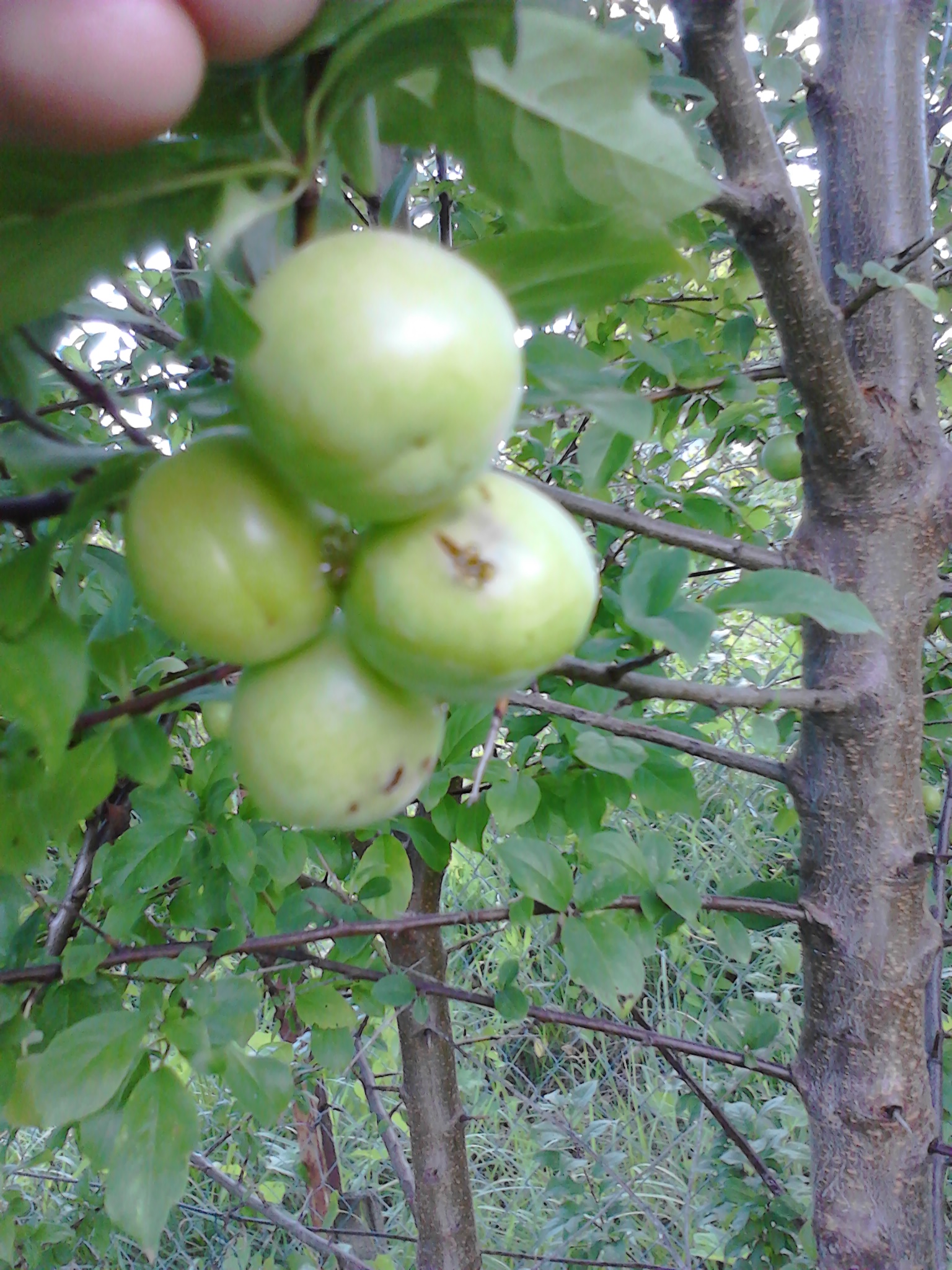 Доброго дня всем! Помогите определить эти плоды. Шарообразной формы, размер черешни, начали созревать и лопаются. У дерева длинные шипы около 4 см.
