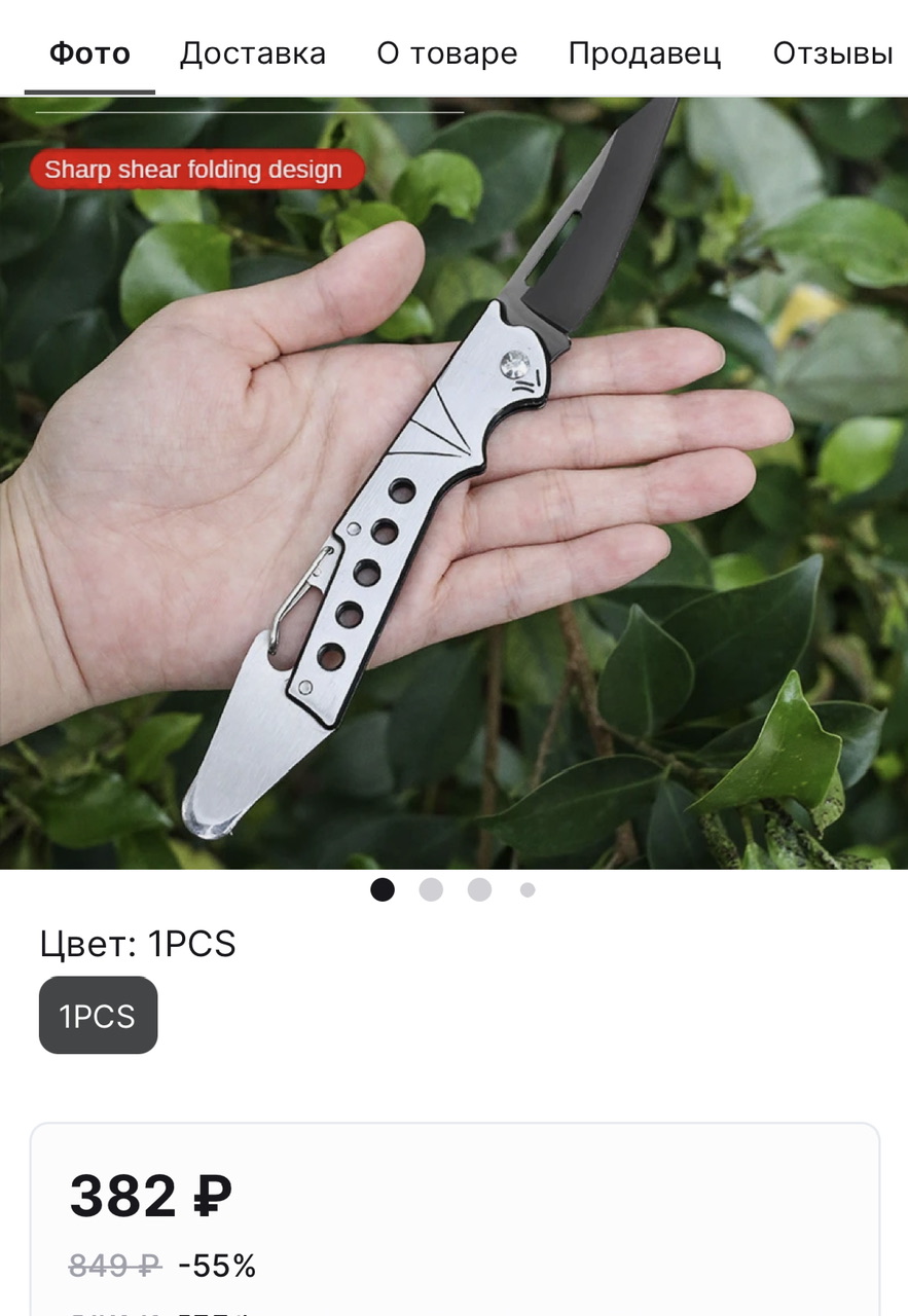 Чтобы не скатываться на рекламу --- понравилось ,что то --- сохраняйте картинку на рабочий стол . и далее ищите по картинке похожие товары ( у кого гугл установлен , то в новой вкладке в поисковой строке есть нарисованный значек фотоаппарата , жмите на него и далее по подсказкам. ) на поиск такого ножичка уйдет максимум 2 минуты , причем будет достаточно много вариантов в том числе и на АЛИ. удачи.----https://lens.google.com/search?ep=cntpu ... p3PT0iXQ==