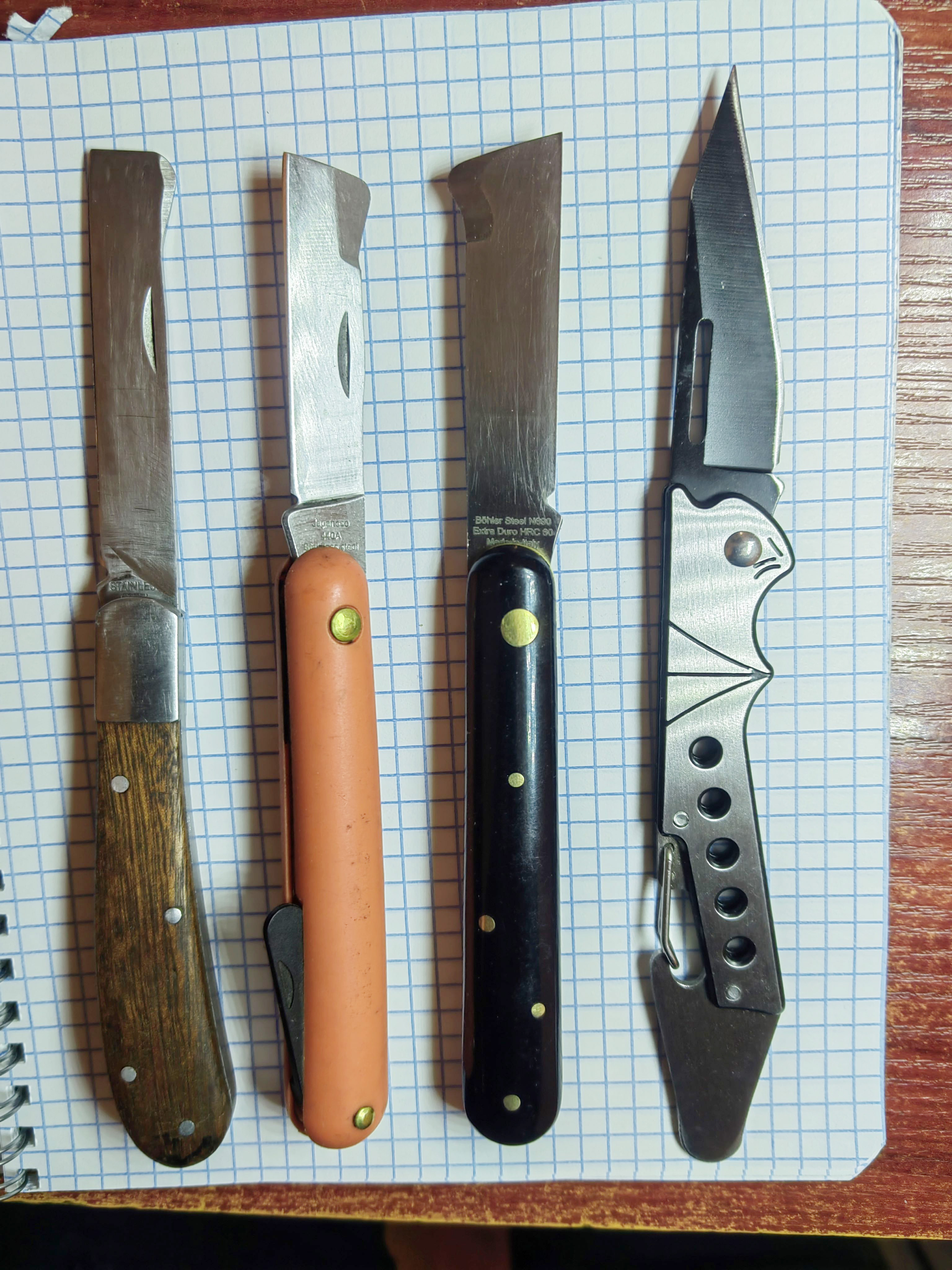 kolidon , полностью с вами согласен, сегодня пробовал, и копченую и вареную.Также нарезал веток ,потренировался с окулировкой,нормально.К нему нужно приспособится,ручка плоская, есть вырез под палец.Видимо, для любых видов прививки, кроме копулировки.Хотя сделал несколько косых срезов, нормально.Весной , в конце лета протестирую, отпишусь.В любом случае,займет свое место в моей небольшой коллекции.Самый ходовой мой первый,полностью переточенный дешевый китайский нож(первый слева).