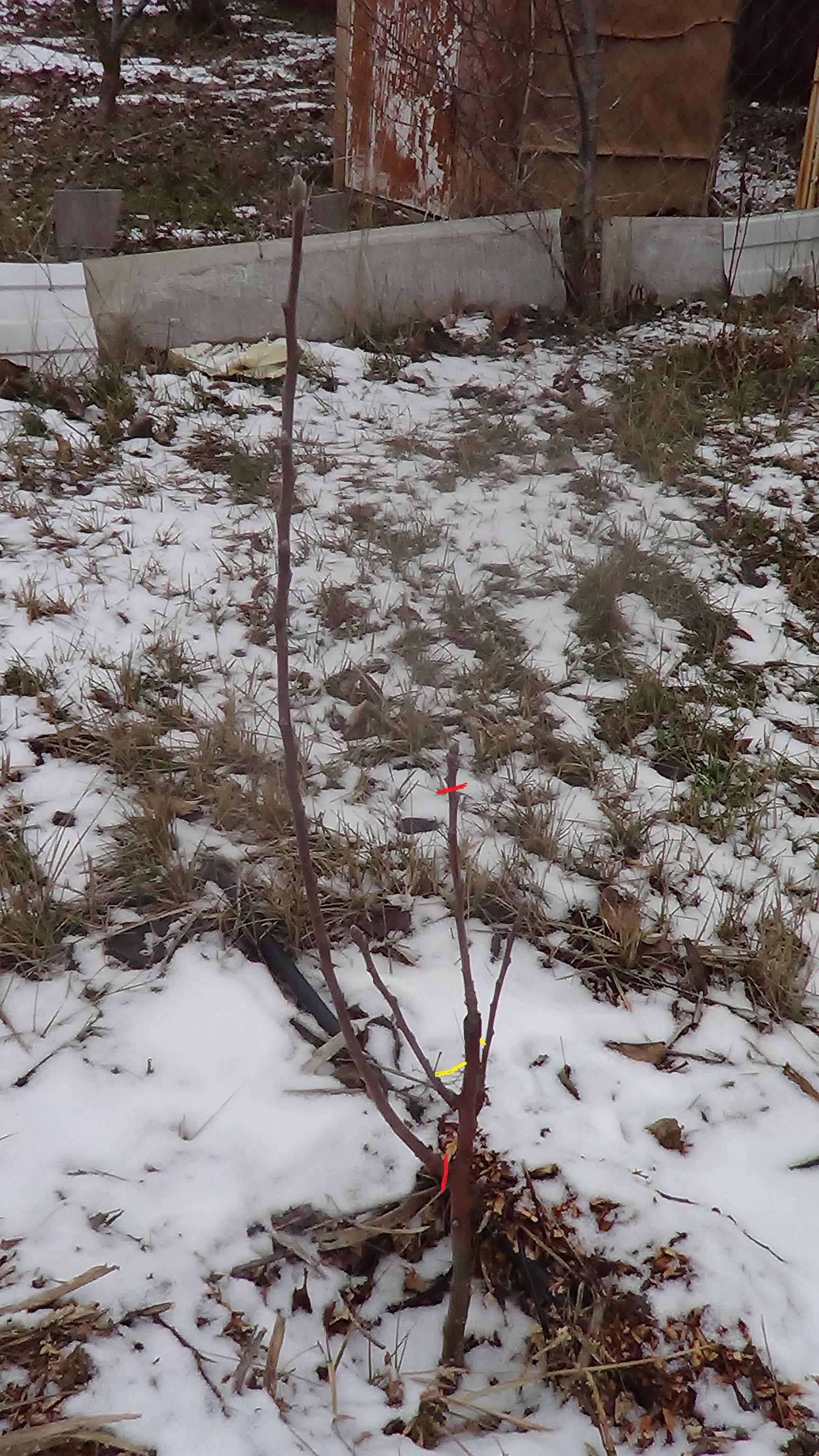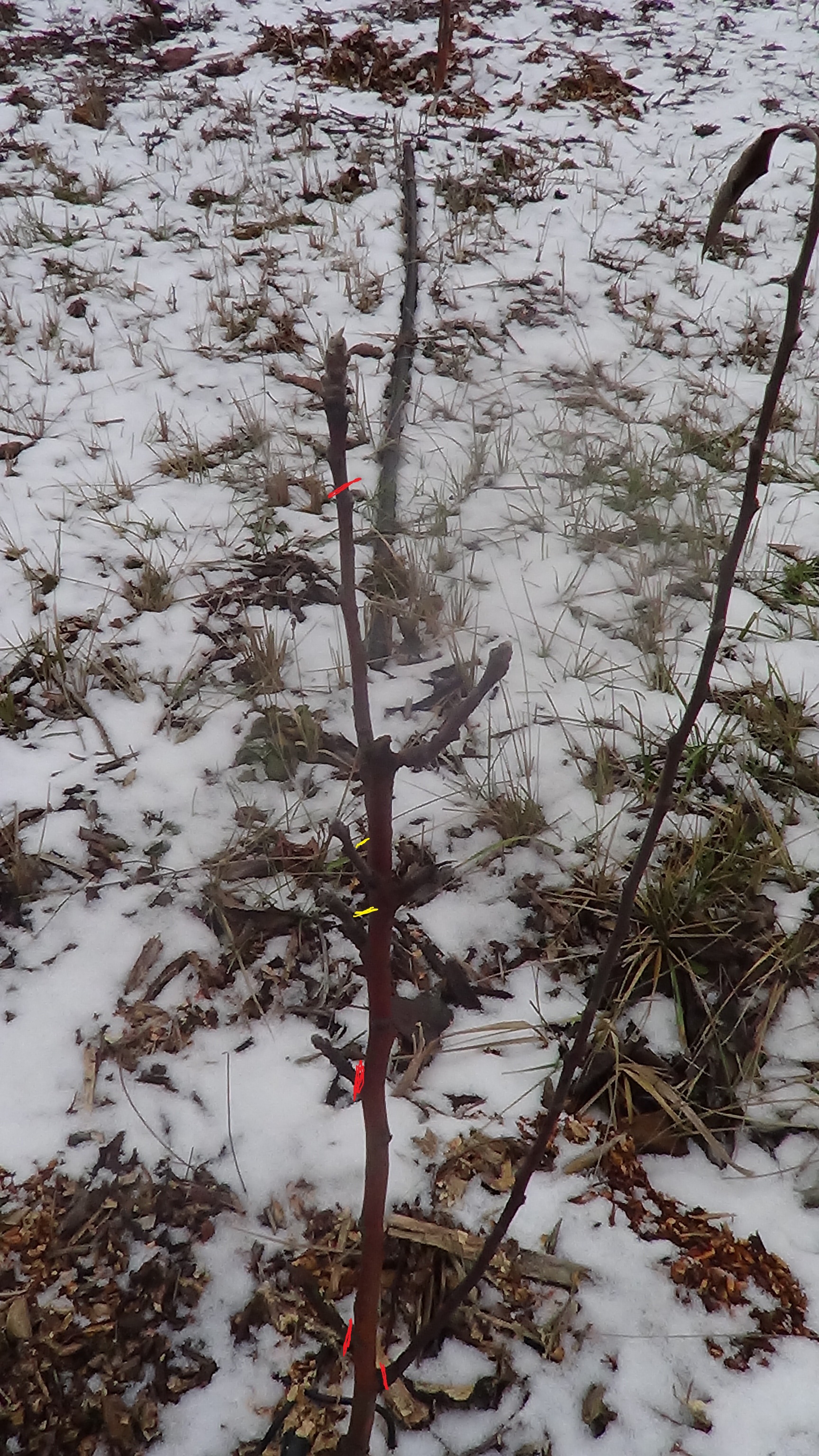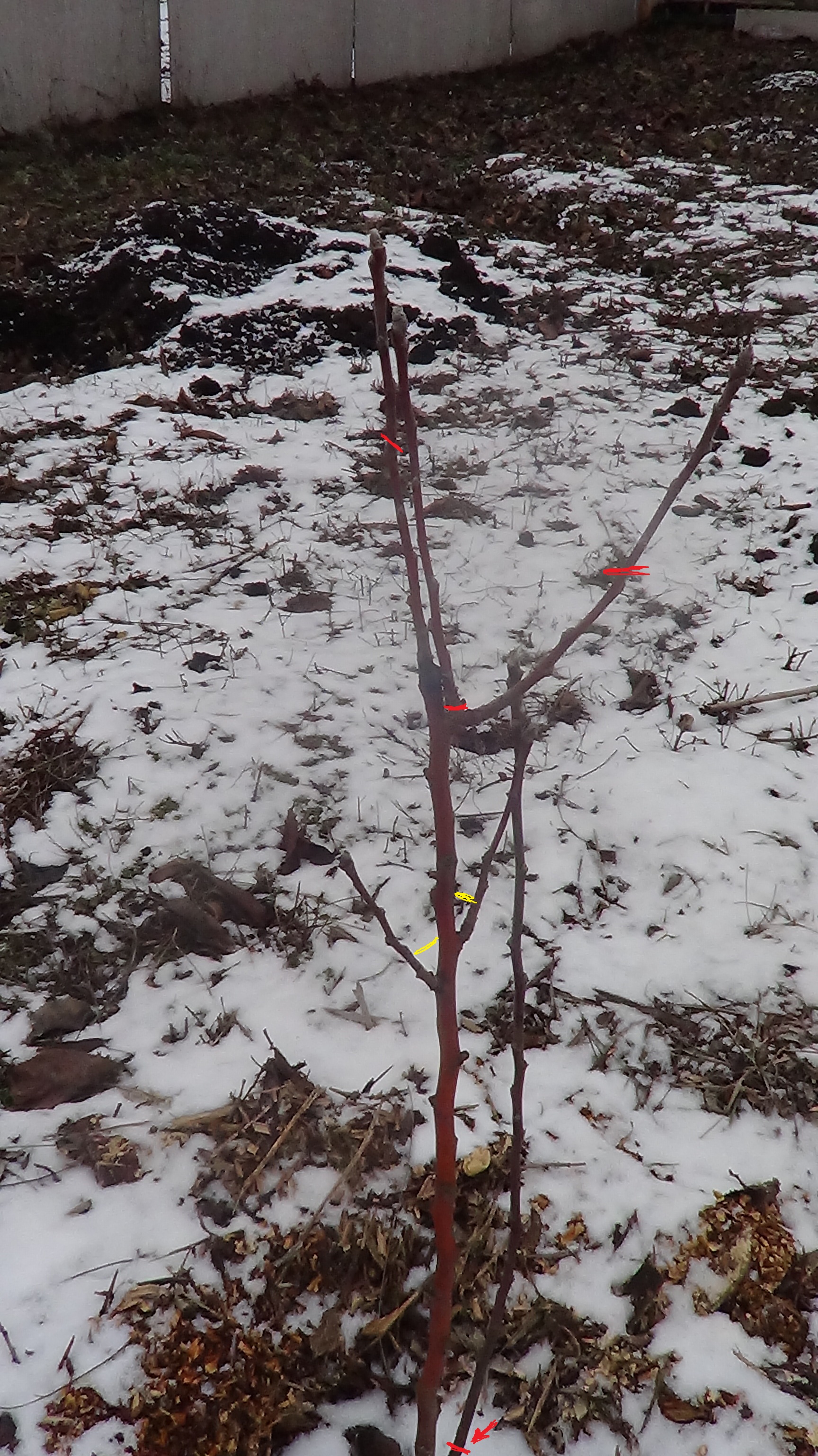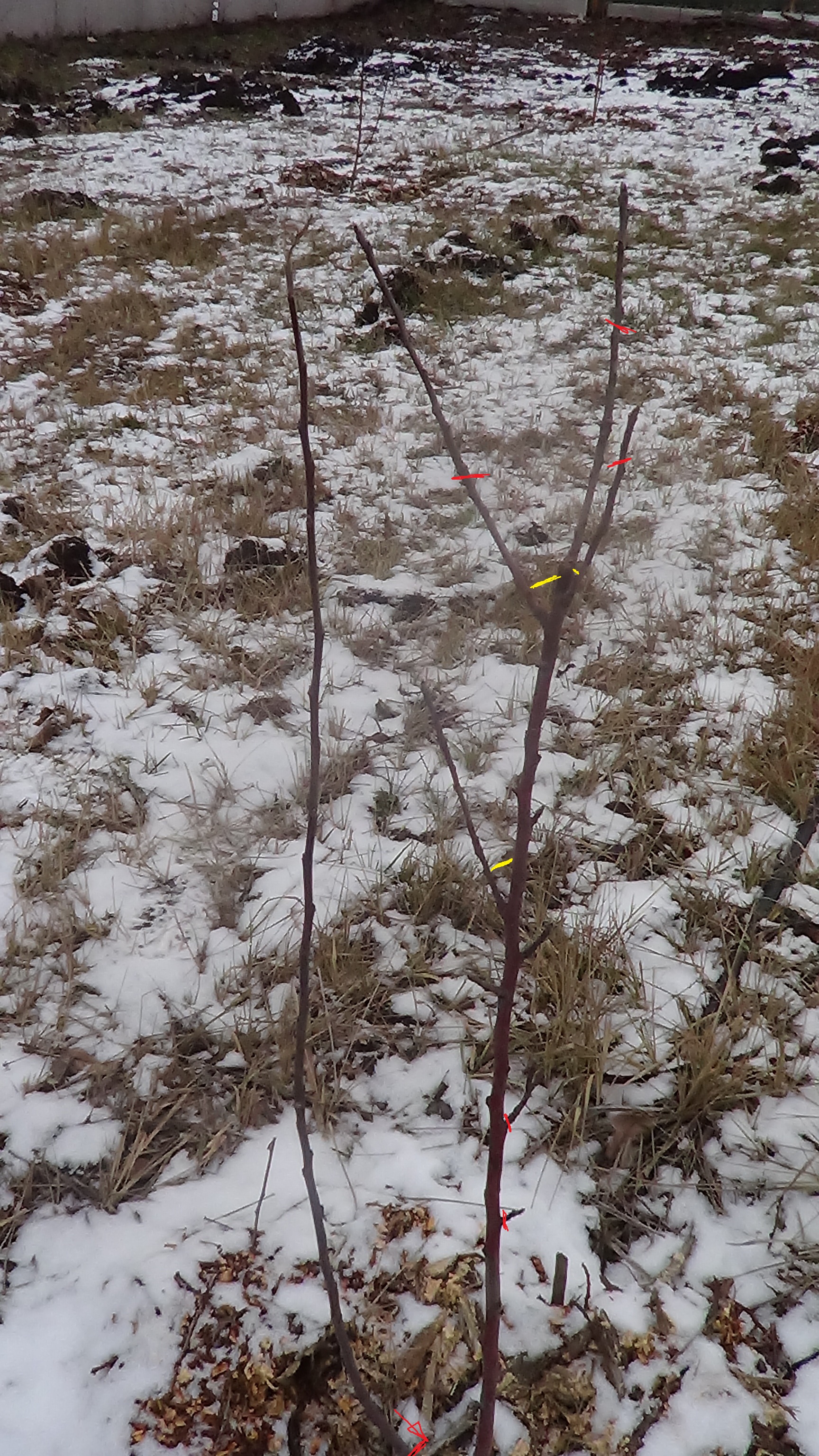 Выкладываю фото саженцев с пометками формирования кроны: