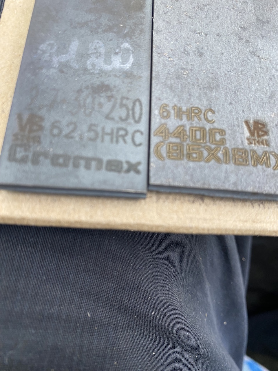 На фото слева быстрорез 64 HRC, справа- Elmax -62 HRC. Работаю этими «не жильцами» 2 года, заточены под 17’ и 20’, результатом доволен.