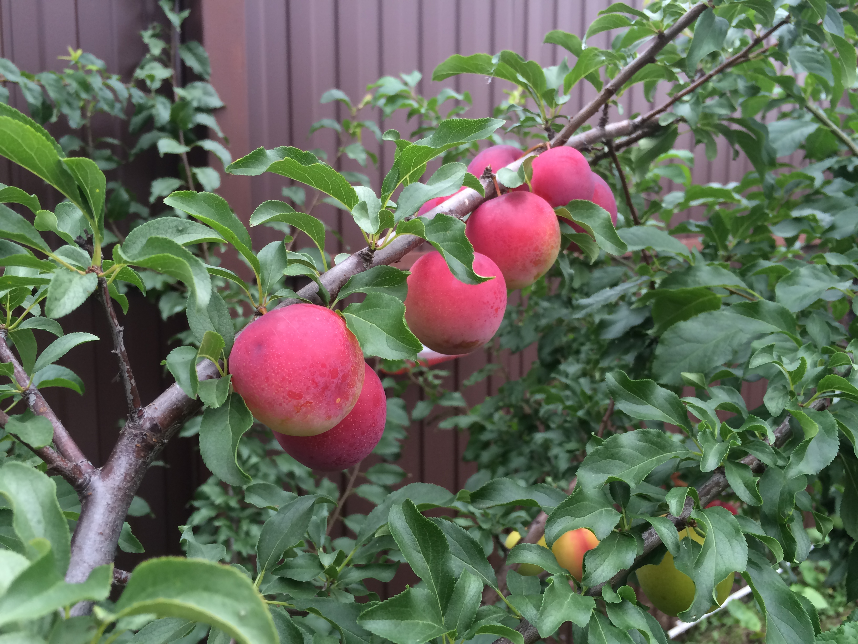 Огромная просьба помочь с определением сорта алычи, пусть даже не точно, а в виде версий. Попробую описать. В августе 2014 г сотрудница принесла мне в подарок 30 см саженец алычи. Вспомнила видно разговор на 8 марта, где я в шутку попросил черенки после ее рассказа о необыкновенно вкусном и выносливом сорте. На дачу они ездят поздно, черенков не привезли, а вот саженец ее муж сделал (огромное им спасибо). Посадил это "чудо" на скорую руку, не ожидая толку, если честно. А вышло иначе... Выросло дерево быстро, первые плоды попробовал в 2016. Оказались очень вкусными! По виду плодов смахивает на КК, и два года цвела и созревала +/- 2-3-4 дня от ее графика. Но тогда было плодов мало и сложно было точно определить. Сейчас проще - плодов намного больше и ясно, что она все же раньше КК выходит на созревание минимум на 5-7-... дней. У меня КК в среднем еще не дошла до кондиции, только первые 4-5 плодов вызрели (да и те осы сожрали). С этого сорта осы тоже не слезают... Сегодня вечером с неизвестного сорта снял первое товарное количество, а ранее тоже по 2-3 шт было в день. Дерево оказалось реально не болявое и практически не проблемное - доволен им. Зиму 2017 пережила визуально прилично (лучше КК). Крона не держится, разваливается, сила роста очень высокая, обогнала КК на 3-й год жизни, хотя и на год младше. Режу сильно. Стараюсь держать в пределах 2,2 - 2,5 м, но она бы уже похоже за 3 м перевалила... Сильно сомневаюсь, что сорт какой-то новый или "эксклюзивный", в силу образа жизни людей от которых он получен, они не сильно увлекались садоводством, скорее все по старинке... Вкус алычи не хуже КК. Сочные и скорее сладкие плоды (нектарный вкус, кислоты почти нет), кожица довольно плотная. Косточка отделяется легко. Мякоть почти красная (с некоей желтизной). Я вначале думал что это КК (сходство вроде есть) и спрашивал об этом, но сотрудница сказала что скорее нет (она даже не знала такого названия). Очень хочется знать, что это за сорт?