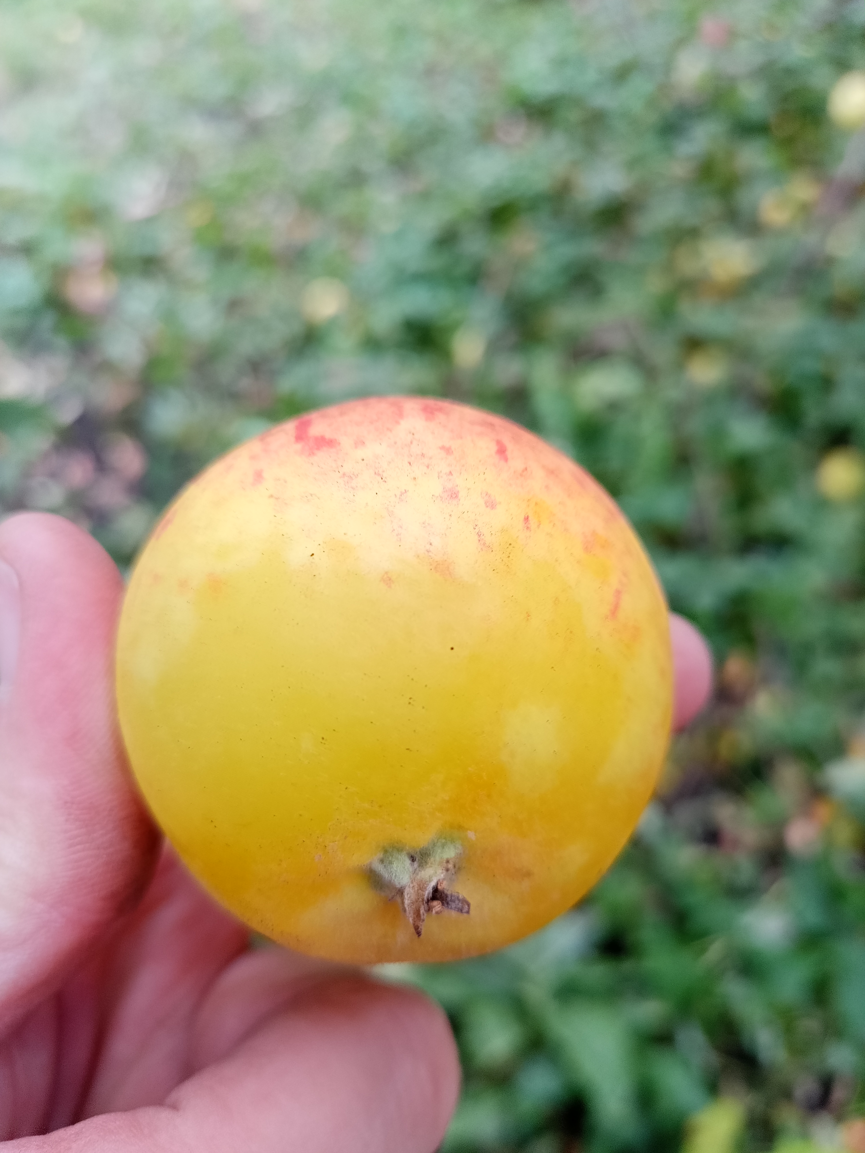 "Зорка", второе и последнее яблоко упало. Гораздо вкуснее прошлого. Есть привкус похожий на Благую весть, но гораздо слабее. 4.4 где-то. Мякоть очень сочная, ближе к нежной как у летних сортов. Даже если пересорт, должно быть что-то интересное, понаблюдаю.