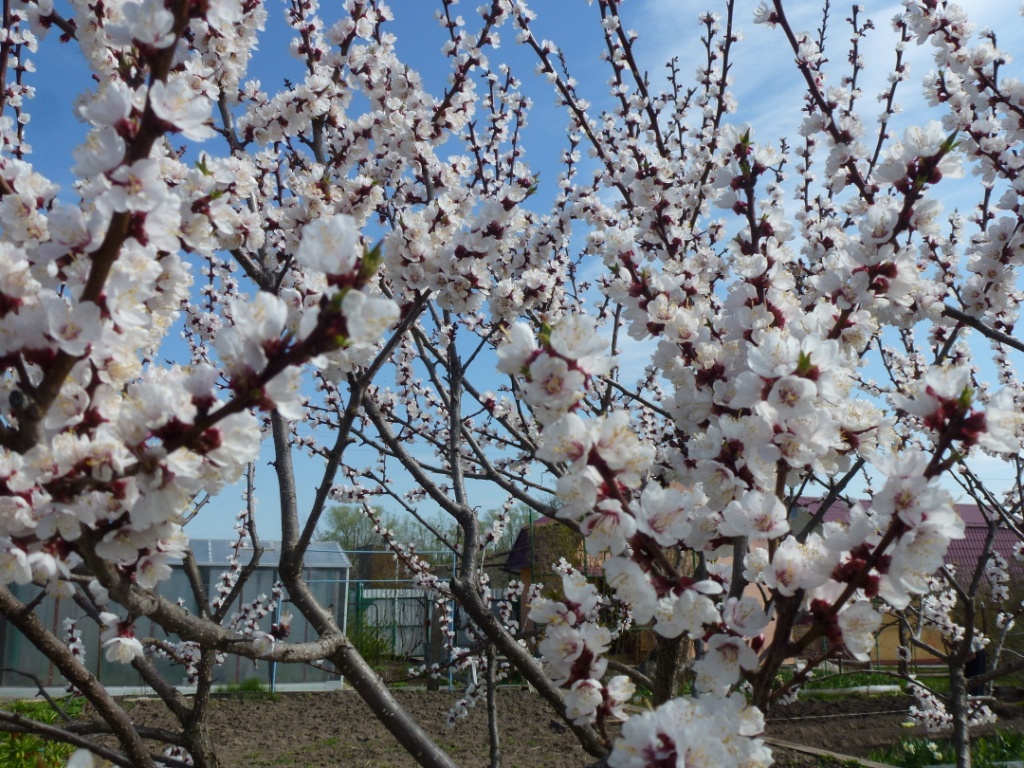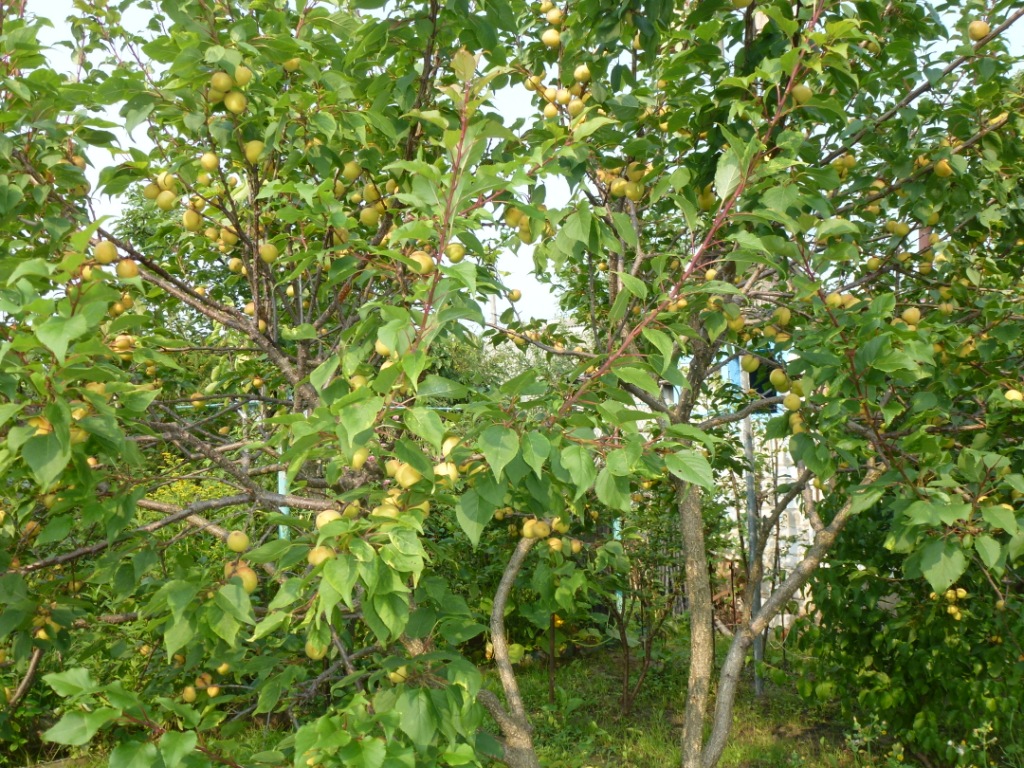 В прошлом веке рос абрикос, красиво цвел розовыми цветами, но после цветения под ветрами и возвратными заморозками в начале мая цветы осыпались, в итоге плодов было мало. Прививался на терн, что потом со временем безобразно смотрелось - толщина привоя была толще подвоя. В итоге потом это все вырубалось...
