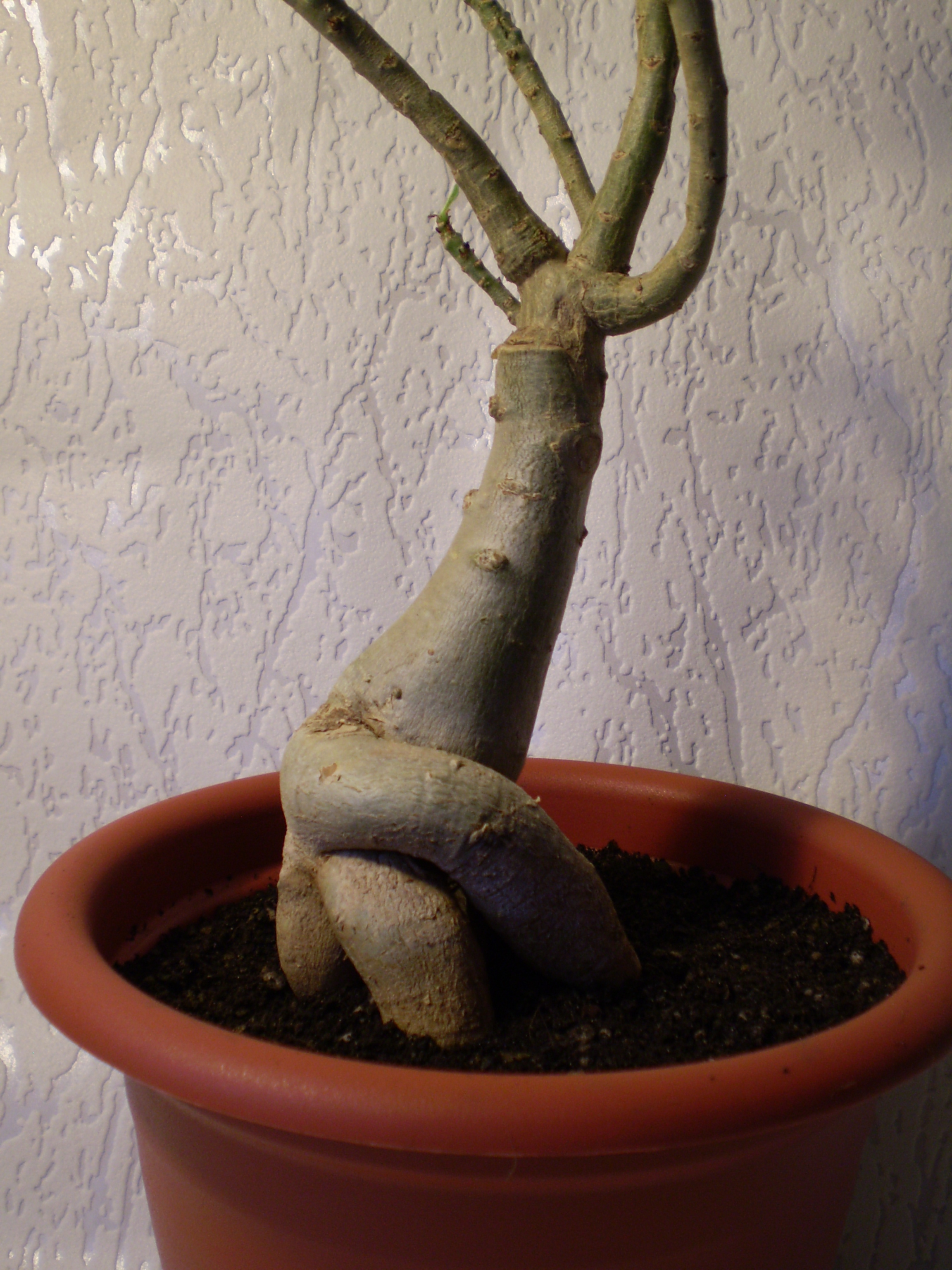 Вот этот адениум я обрезала в марте этого года (в возрасте 1 год). У него тоже было несколько ветвлений с младенчества. Сейчас мы такие пушистые, диаметр каудекса более 10 см.