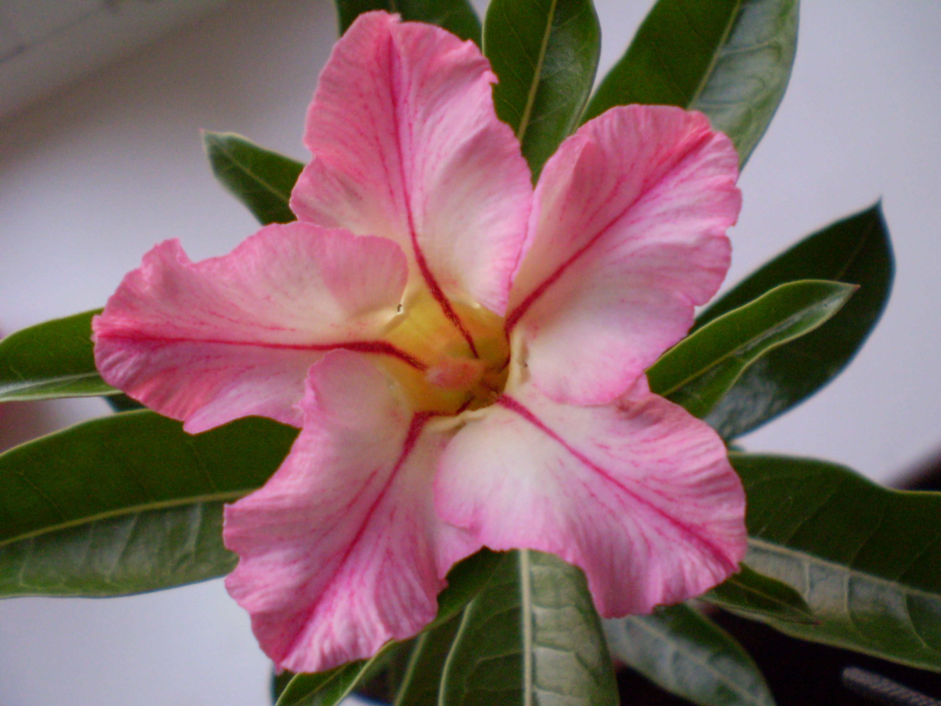 На данный момент у меня 24 растения. Плюс около 20 сеянцев весеннего посева. (отправила их на зимовку к свекрови). Сейчас тоже 3 адениума готовятся к цветению, но не знаю, перенесут ли они нынешнюю осеннюю серость. Стоят на восточном окне без подсветки. На днях приехал новенький, привитый. Трипл, обещано махровое цветение. Вот он на фото.