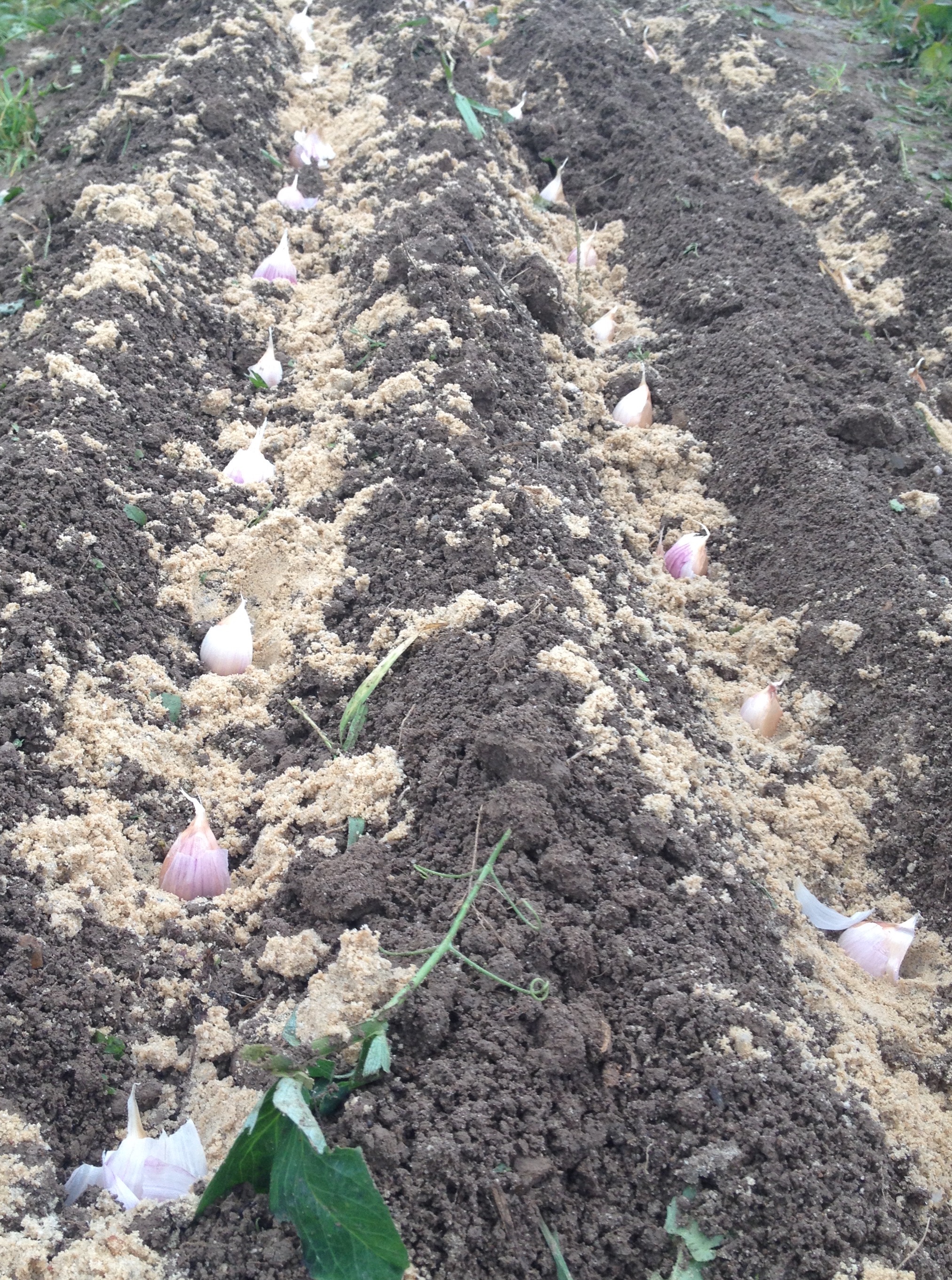 А у меня тяпкой никак не получается делать именно углубления.Всё мелко оказывается после засыпки.Теперь лопатой прокапываю траншейку,вношу перегной раскладываю зубки и уж потом тяпкой землю нагребаю поверх.Тем более сейчас приноровились сажать после огурцов, там земля рыхлая,легко копается