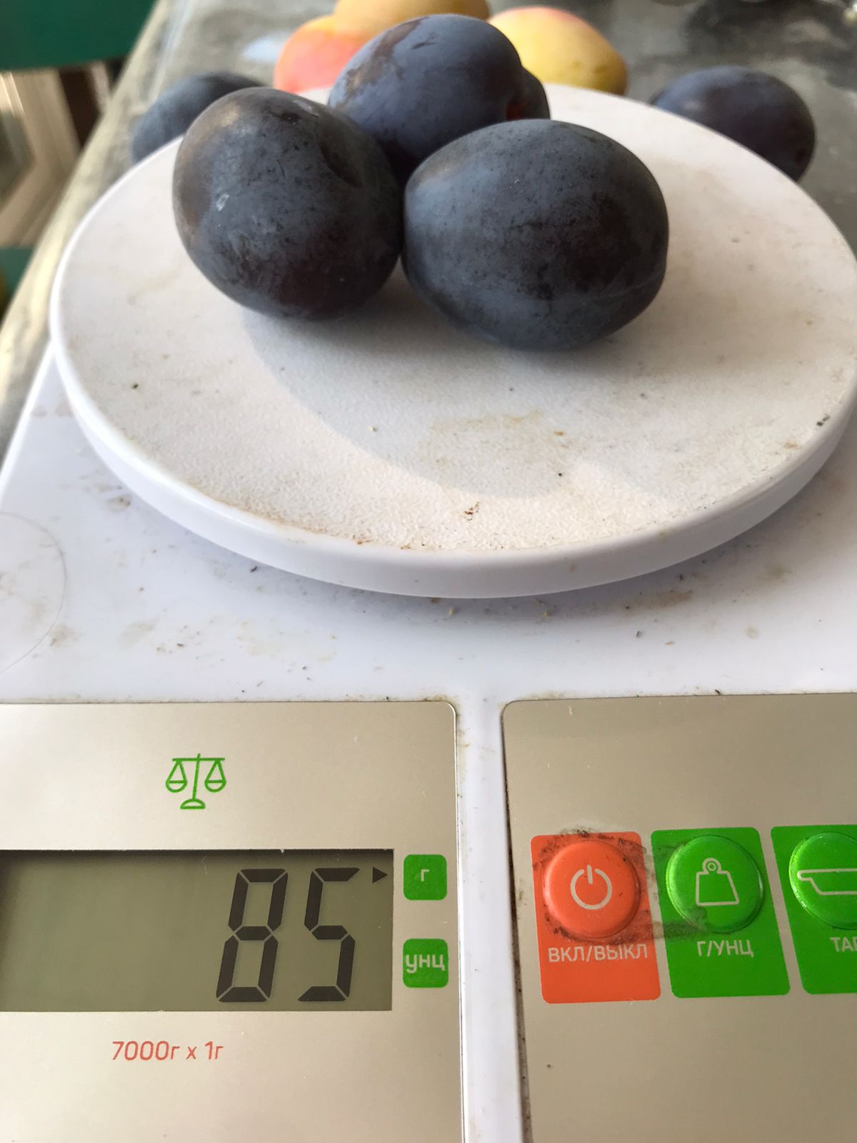 Не поняла, что невероятного? Вес плодов? У меня тоже слива мелкая. Местная венгерка - грамм до 15, алыча Мара - 18-22 грамма (прямо сейчас взвесила). Крупная слива (для меня крупная) - грамм 20 (вот, на весах). Сорт не знаю, куплена как "Поздняя" - действительно, созревает чуть позже нашей привычной венгерки, и слаще. Вот только к октябрю закончилась. Еще была Вашингтон (под таким названием куплена). Вот она для меня совсем крупняк. Сладкая, только растрескалась вся, хотя дождей не было. Понравилась, хотя Dim оценил ее так: "Если сравнивать с Очаковской жёлтой - то как до Китая. У себя убрал." (Наверное, я слаще морковки ничего не едала