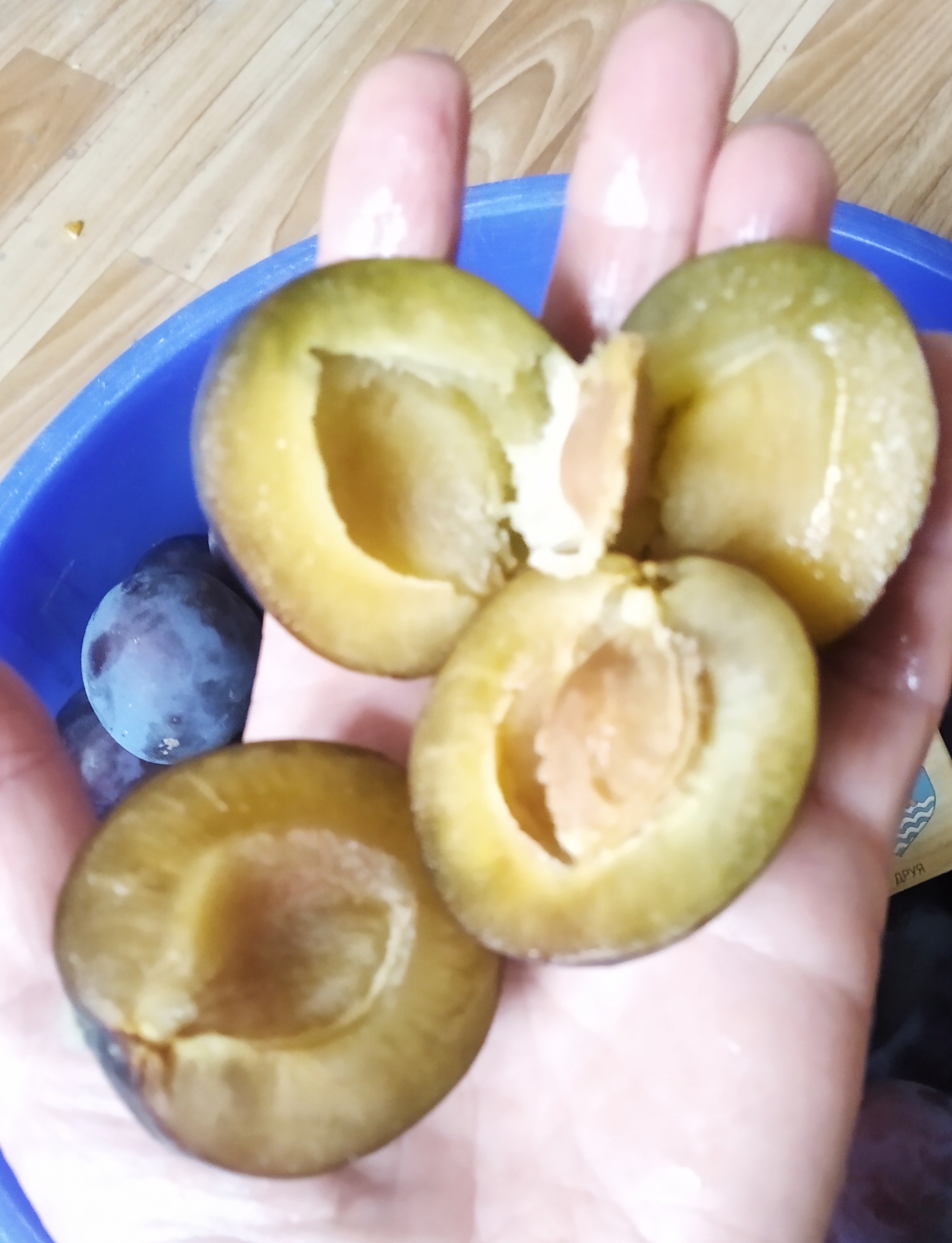 Показать уже не могу-все съели! Штук 15 было, сигналки на прошлогодней прививке... Ну а косточка обычная по размеру для сливы, как у Скороспелки красной. Хотя по сравнению с размером самой сливы она кажется небольшой.