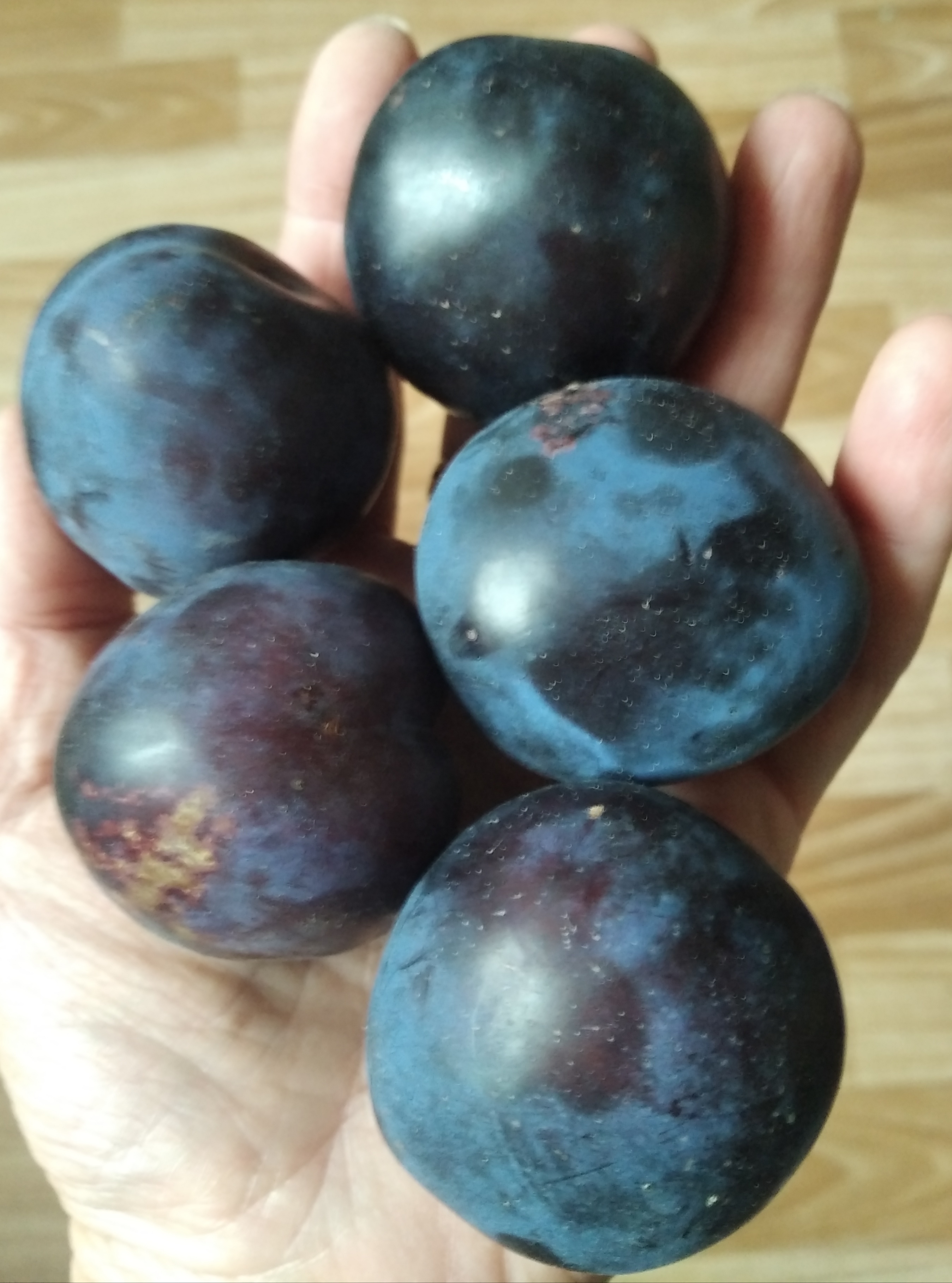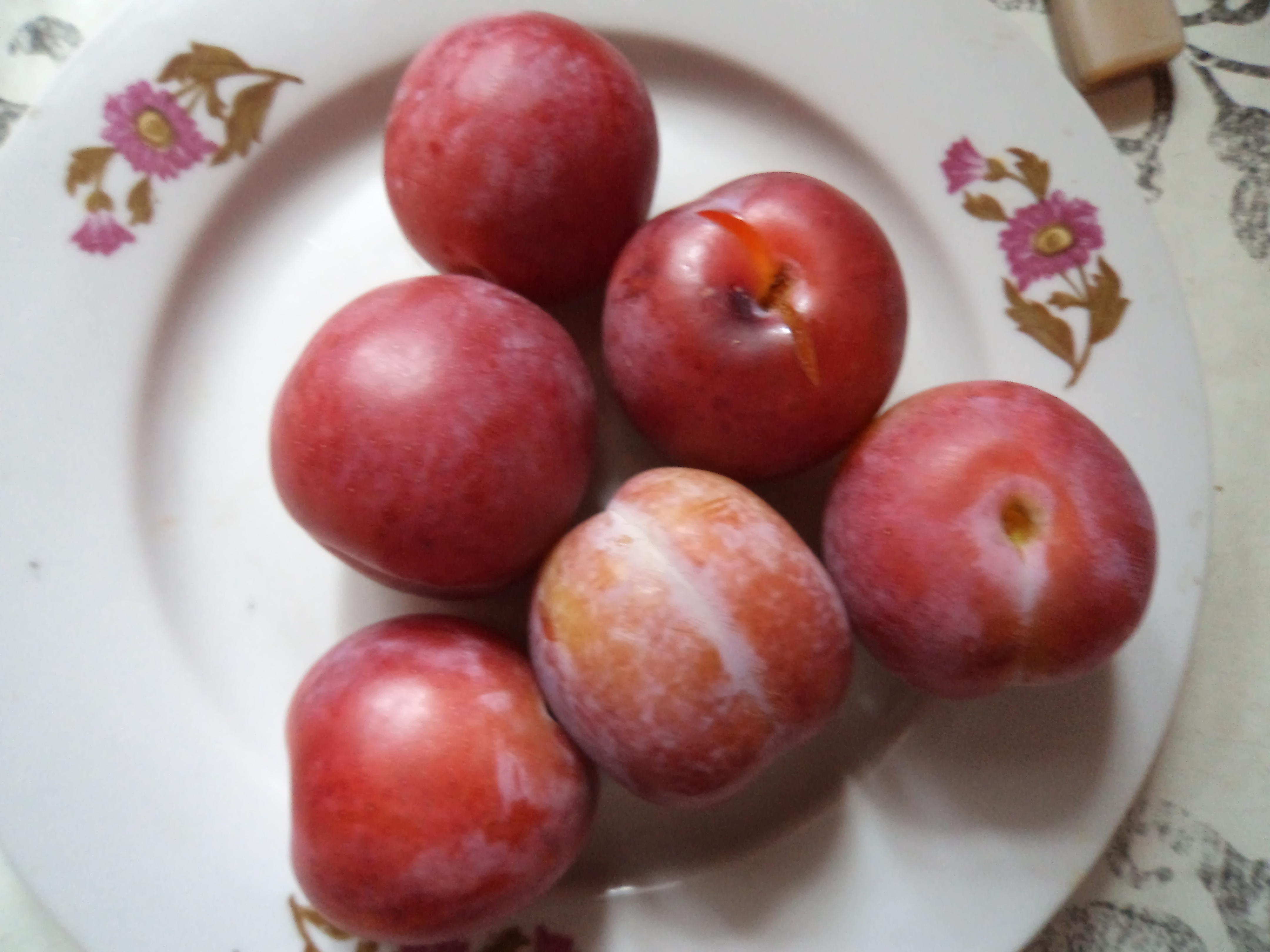 Понравился сорт 1738. Было несколько десятков плодов на привитых ветках, которые быстро были съедены, только последние успели сфотографировать. По вкусу сладкий, чуть кислинки есть в кожице. Мякоть плотная как для сливы, но при этом сочная - то что надо как по мне, всем тоже понравилось. Кожица чувствуется, но совсем не так сильно, как на гибридных сливах (Царская, Кубанская комета, и т.п.), вполне съедается слива целиком. На ветке держится хорошо, даже полностью созревшие. После сентябрьских дождей часть плодов треснула - это минус, других пока не заметил.