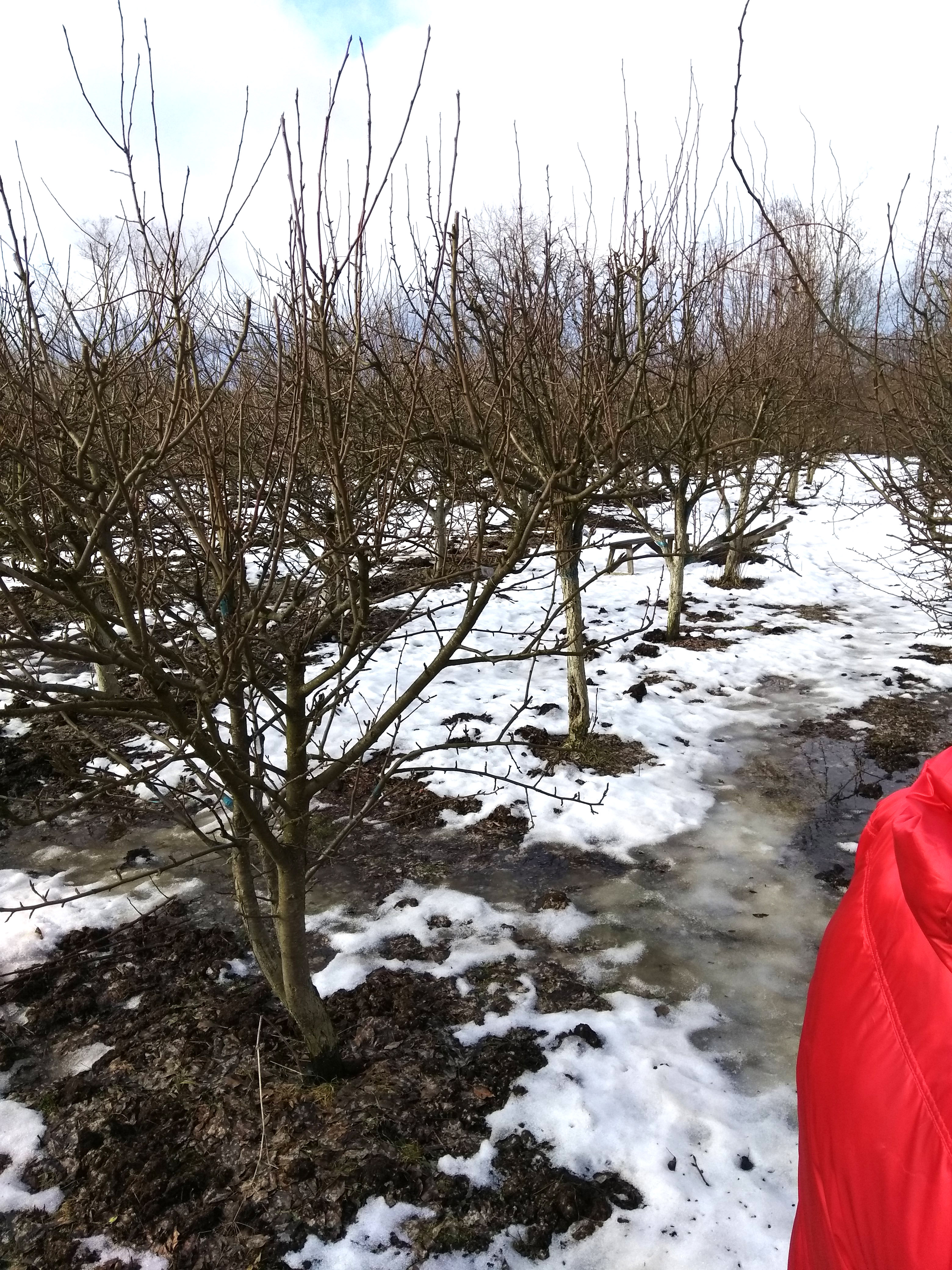 Сейчас не по этой надобности, по другой, залез в архив своих фото, когда ездил к Агееву - 27 февраля - сад перед весенней обрезкой.Вова Капран писал(а): ↑22.01.2023, 19:00Подскажите рекомендуемую схему посадки яблони на карликовом подвое М9 для: