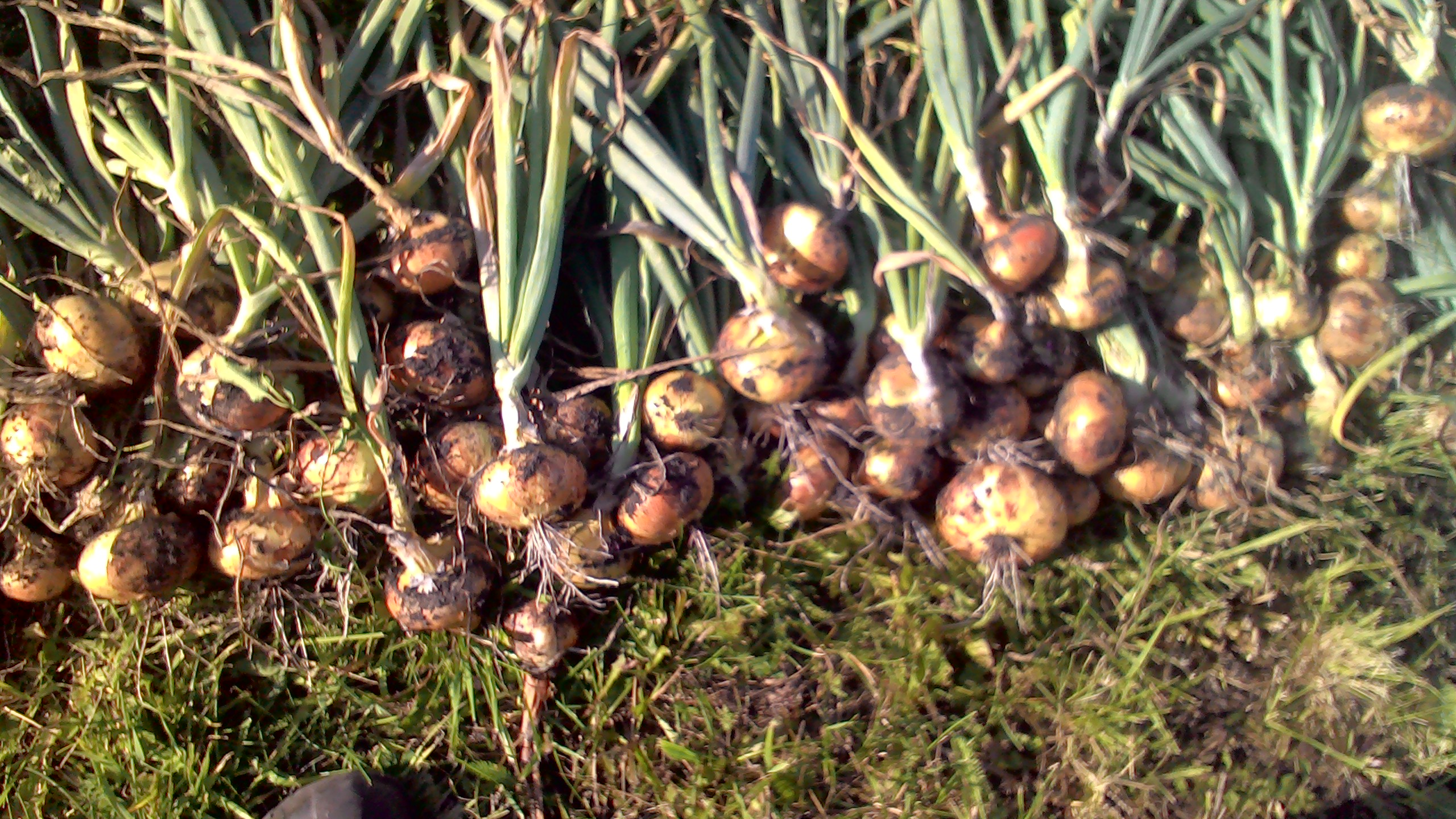 Взвесил урожай. Эксибишена получилось 10 кг с 4 кв.метров. Половина рассады выпала из-за засухи (полить не было возможности). Средний вес луковицы 160 г.