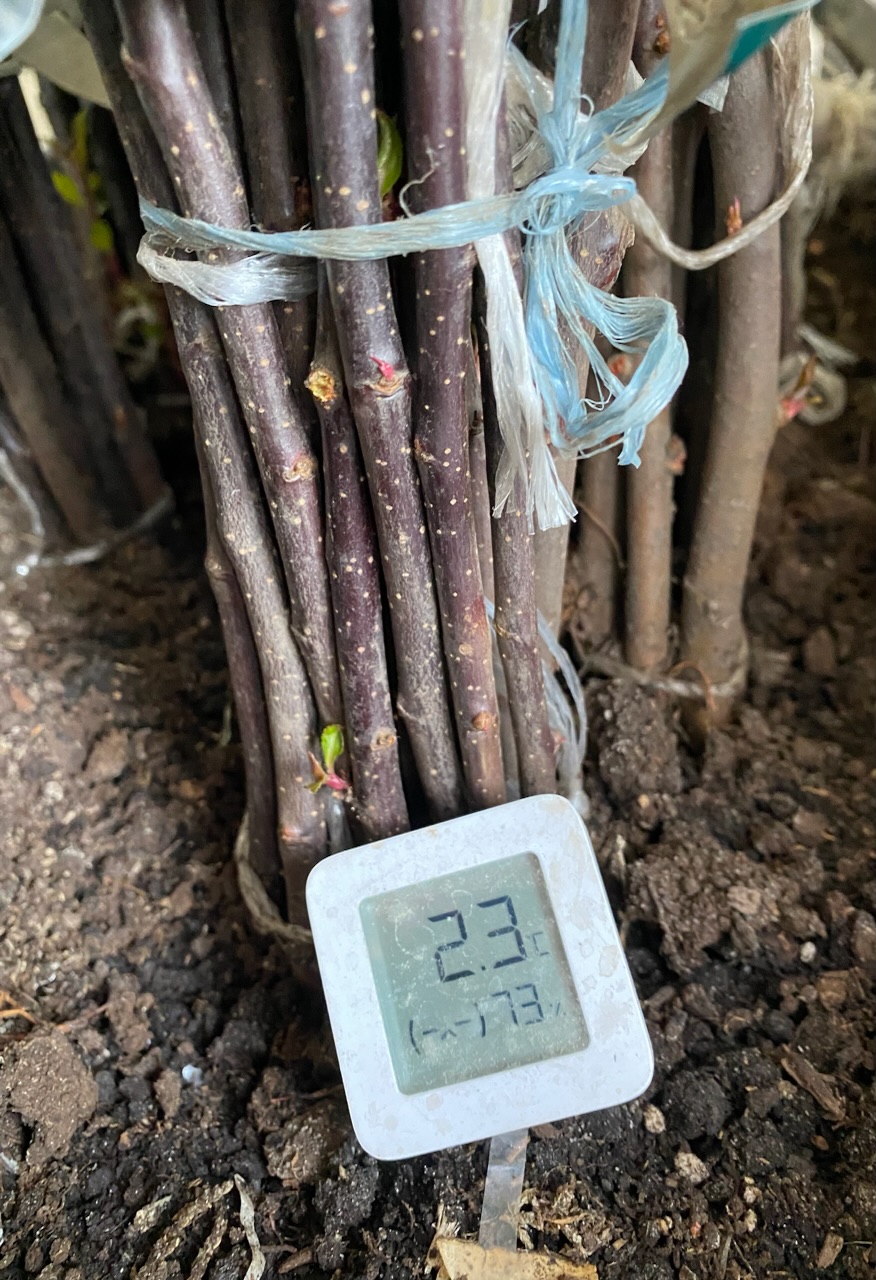 В 23.50 на улице +2’С, на поверхности земли-2’С. Занёс ящики с ЗП на веранду, хоть и не отапливаемая, но застекленная и тепло от дома добавляет 2’С к уличной t.