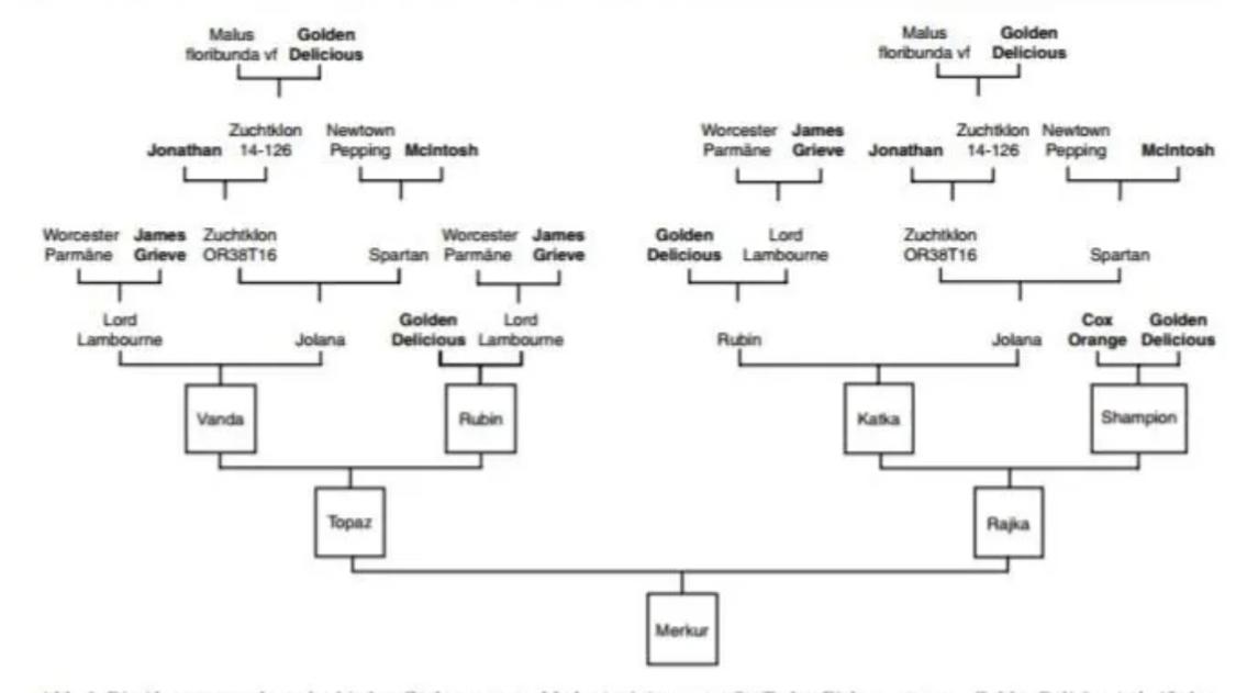 6a. МЕРКУР - Топаз х Райка. Не попадают под эту схему новые чешские сорта: Далила, Мелодия, Делига, Деликатес, Делор, Денар, Диадем, Дима, Диона, Долорес, Дублет, Флордика, Джулия, Дукат, Сентима, Селена, Примадела, Нела, Мивибе, Кармина, Хана, Якубка Красная, Фроста, Юдита, Юнона и др.