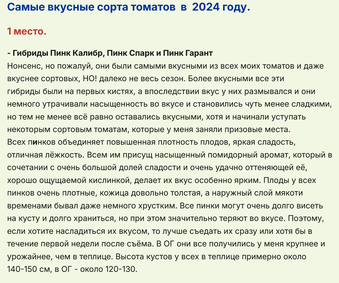 Обобщенный подход. При выращивании много факторов надо учесть, и не только вкус. Хотя многие сейчас гибриды вкусом обходят сорта. Для сравнения я ранее выкладывал на эту тему оценку сторожилов самого что ни на есть сортового сайта томатов(Т-П). Вот повторяю-