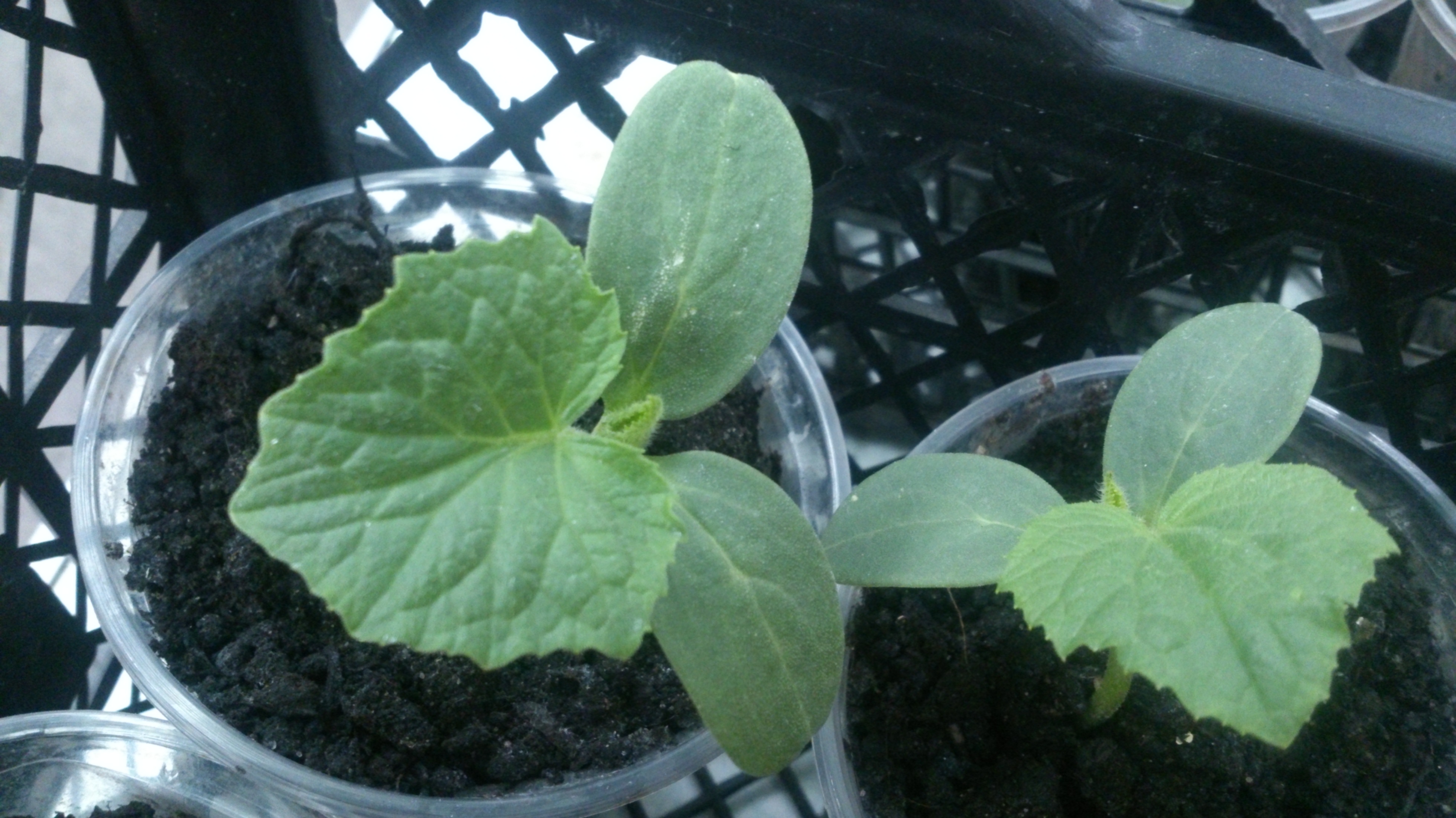 Сорт Примадонна.Не собиралась сеять, но так получилась,что жаль было выбрасывать посеянную для проверки всхожести лагенарию, что привила эти огурцы. Один 28 февраля, второй 3 марта. Вот до сих пор сидят на подоконнике.Первый огурец сорвали 16 апреля.