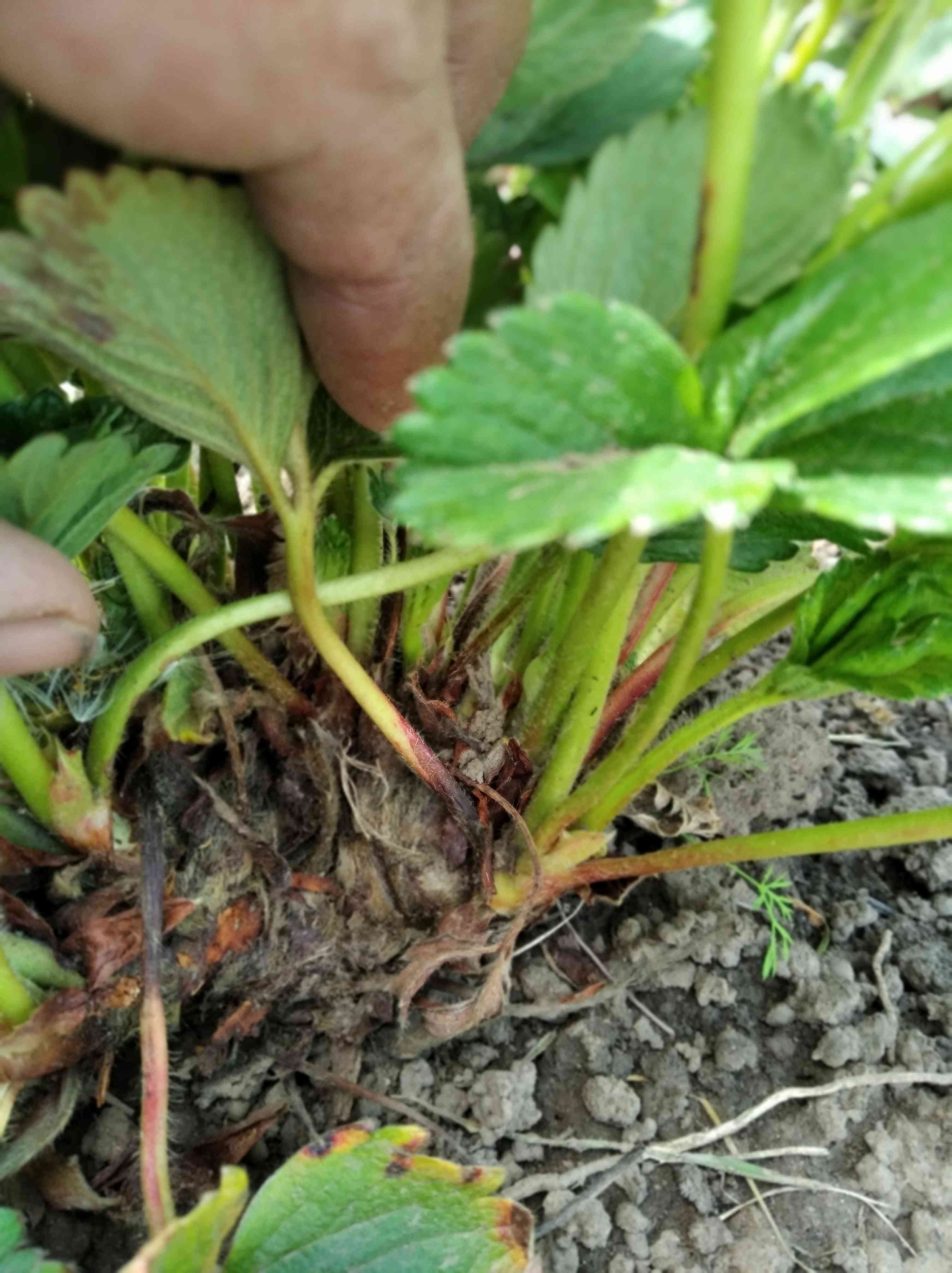 Тоже думаю, что Фитофт-я кожистая гниль корневой шейки и корней. P. cactorum. На Вашей землянике все признаки налицо: фото1 сооб.3228. Листья измельчаются. Корневая шейка - разрез - коричневое кольцо. фото 3. Цветоносы и черешки в бурых пятнах и некрозах. Листья "старые" стали жёсткими. Правильно, что опрыскали д.в. Дифеноконазолом. Из препаратов ещё Строби, Ширма, Профит Голд.