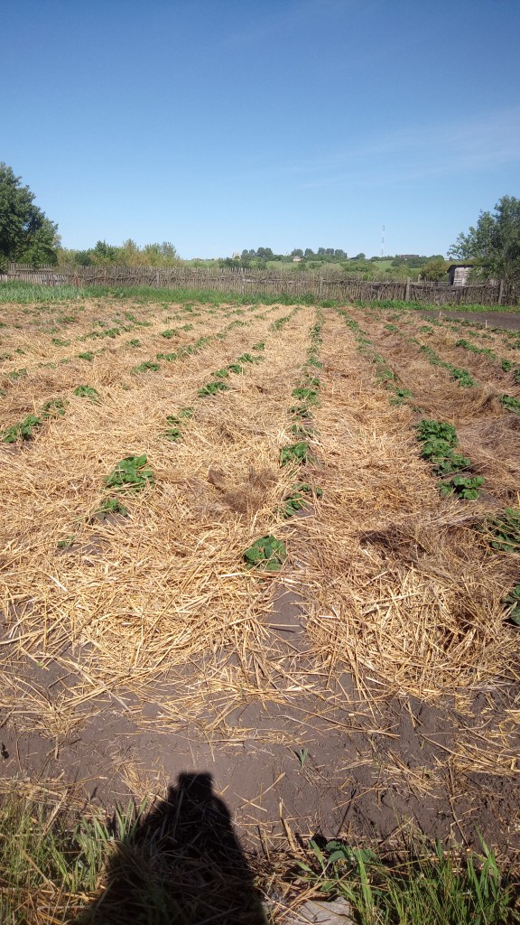 Сегодня часть своей плантации прополол в 3-й раз и накрыл все междурядья тольстым слоем соломы. Завтра вторую часть ждет таже участь.Пока картоха радует.