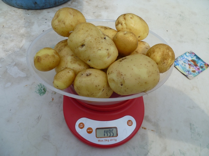 На Колобке много мелких картофелин, размером с вишню. Тем не менее клубни уже достаточно крупные. Самый крупный потянул на 248 г., а общий урожай с куста составил 1,2 кг. Гала показала урожай 1,44 кг, самый крупный клубень 150 г. Не поленился нашел результаты прошлогоднего подкопа примерно в это же время - http://forum.prihoz.ru/viewtopic.php?p=659294#p659294. В этом году клубни крупнее и урожайность выше. Картофелю еще расти порядка месяца, копать планирую в районе 1 сентября.