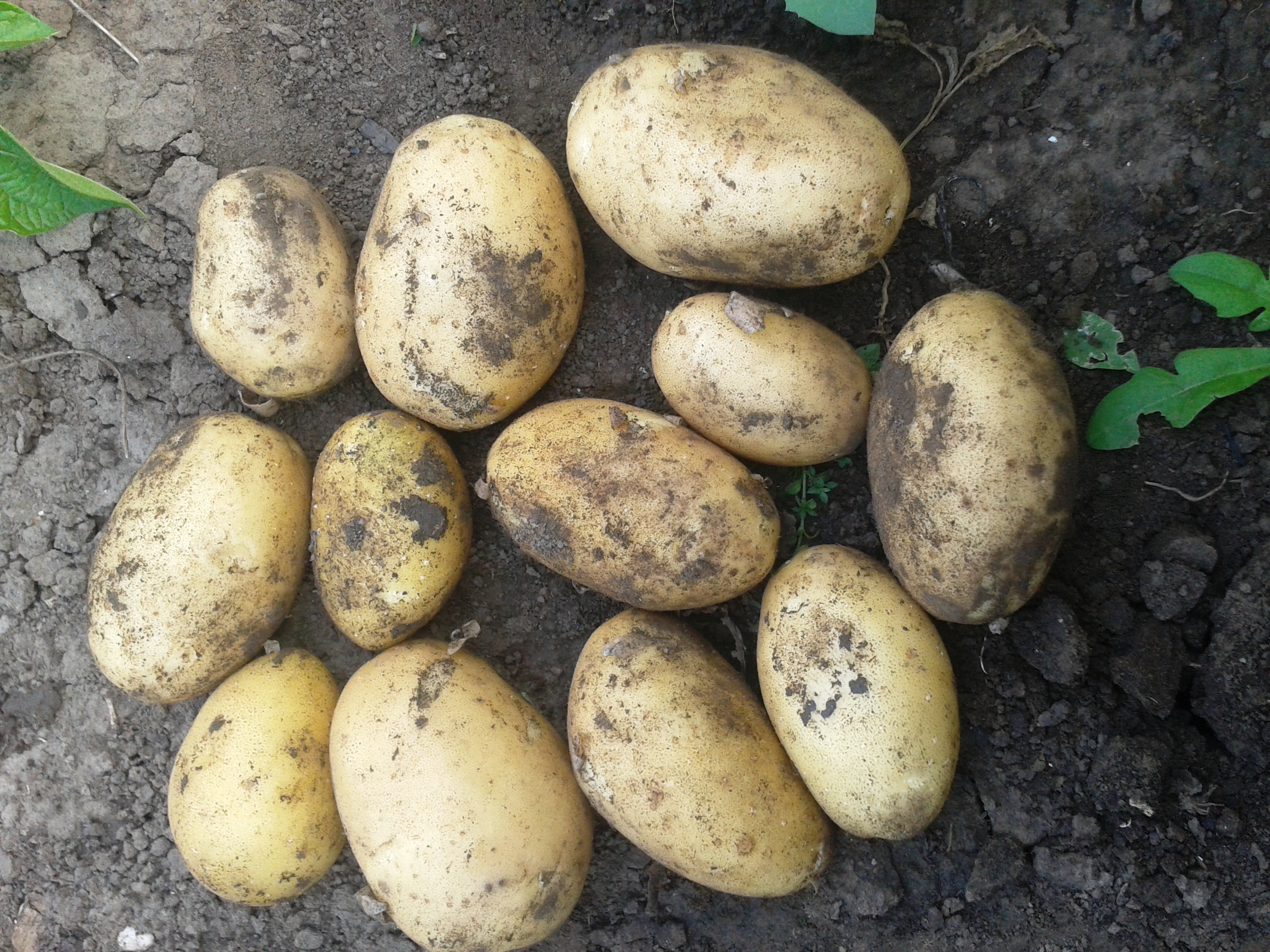 В этом году по просьбам трудящихся(сына)картошки посадила буквально 10 кустов.Сажала по методу Люды-Aleksan9ra,рассадой.Было буквально 4 куста синеглазки,остальная была магазинная.Магазинная очень понравилась по вкусу,поэтому посадила.Так вот,из магазинной вышли такие крупные,красивые,гладкие,удлиненные клубни.Сама желтая и мякоть желтая.Это при том,что окучивала я ее всего один раз и больше к ней не подходила.Вот теперь думаю-как бы несколько клубней мне сохранить для следующего года.А синеглазка вышла мелкая и корявая. :-(