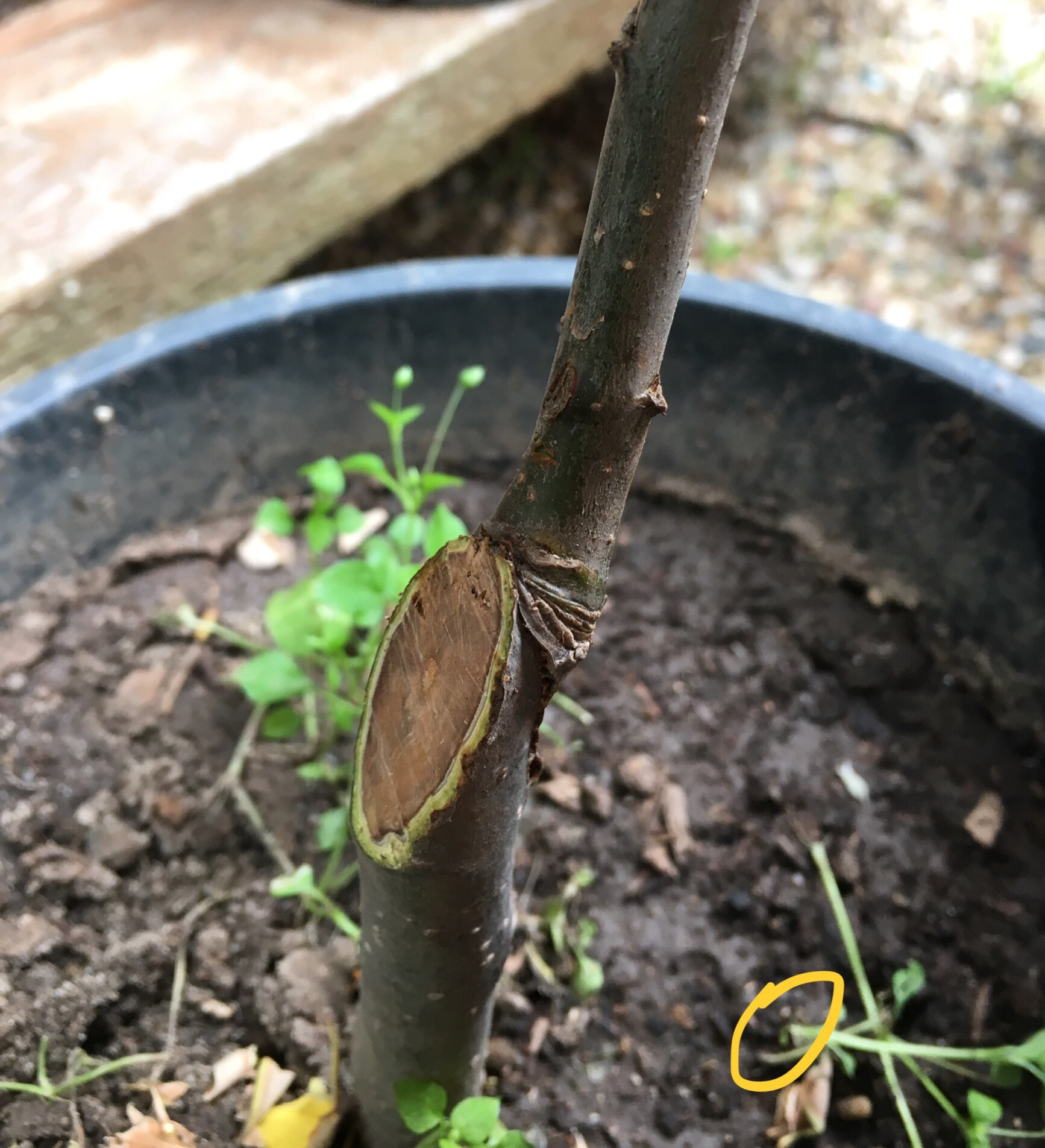 Прошу совета. С этой прививкой все нормально? Сухой пенёк подвоя и вся левая сухая часть не слишком низко опустилась? Что-то нужно сделать сейчас? Отрезать-замазать или не трогать, само справится?