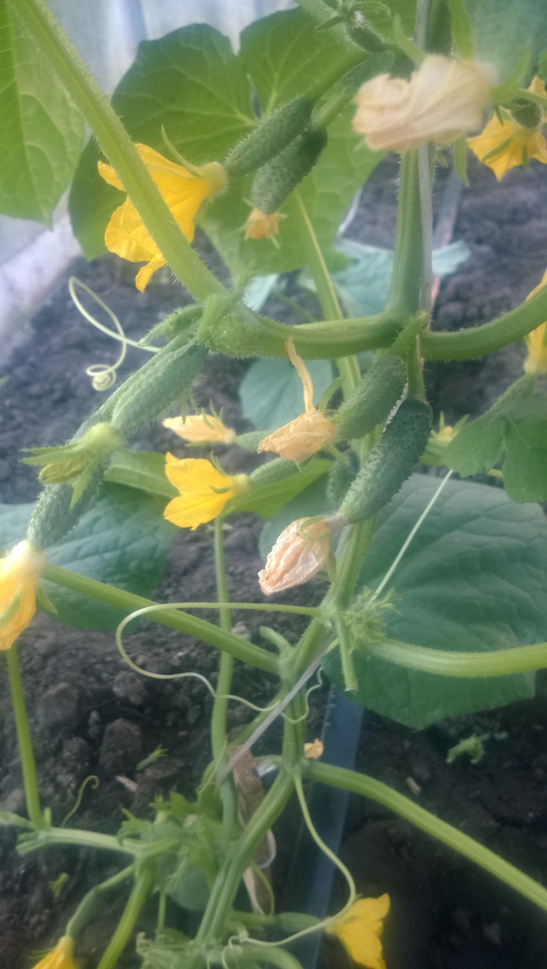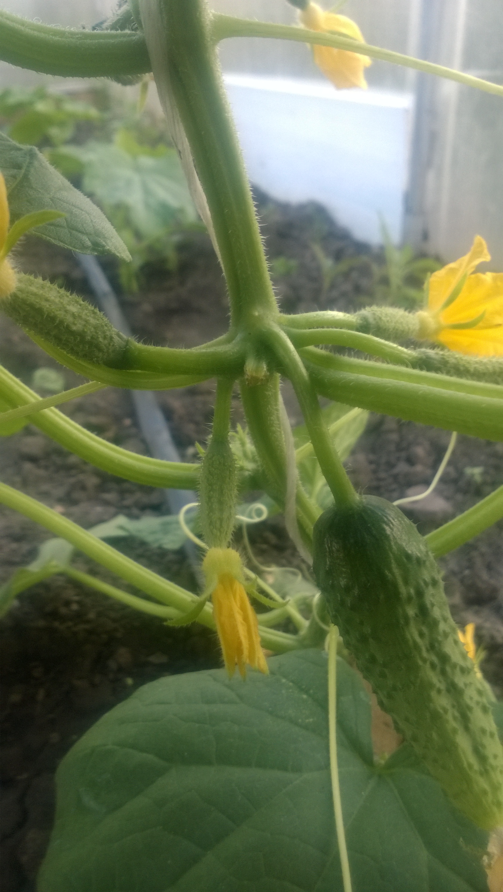 Остался лишний один Огурец (посадка 15,04) , воткнуть было уже некуда , так и стоял неприкаянный в парничке