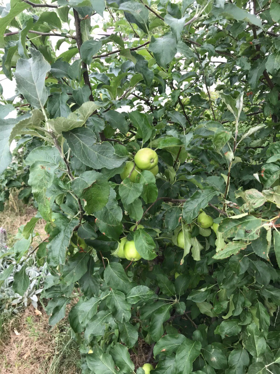 Союз,абсолютно чистый от парши и прочих болячек,поражает размерами плодов.Яблоки начали окрашиваться.