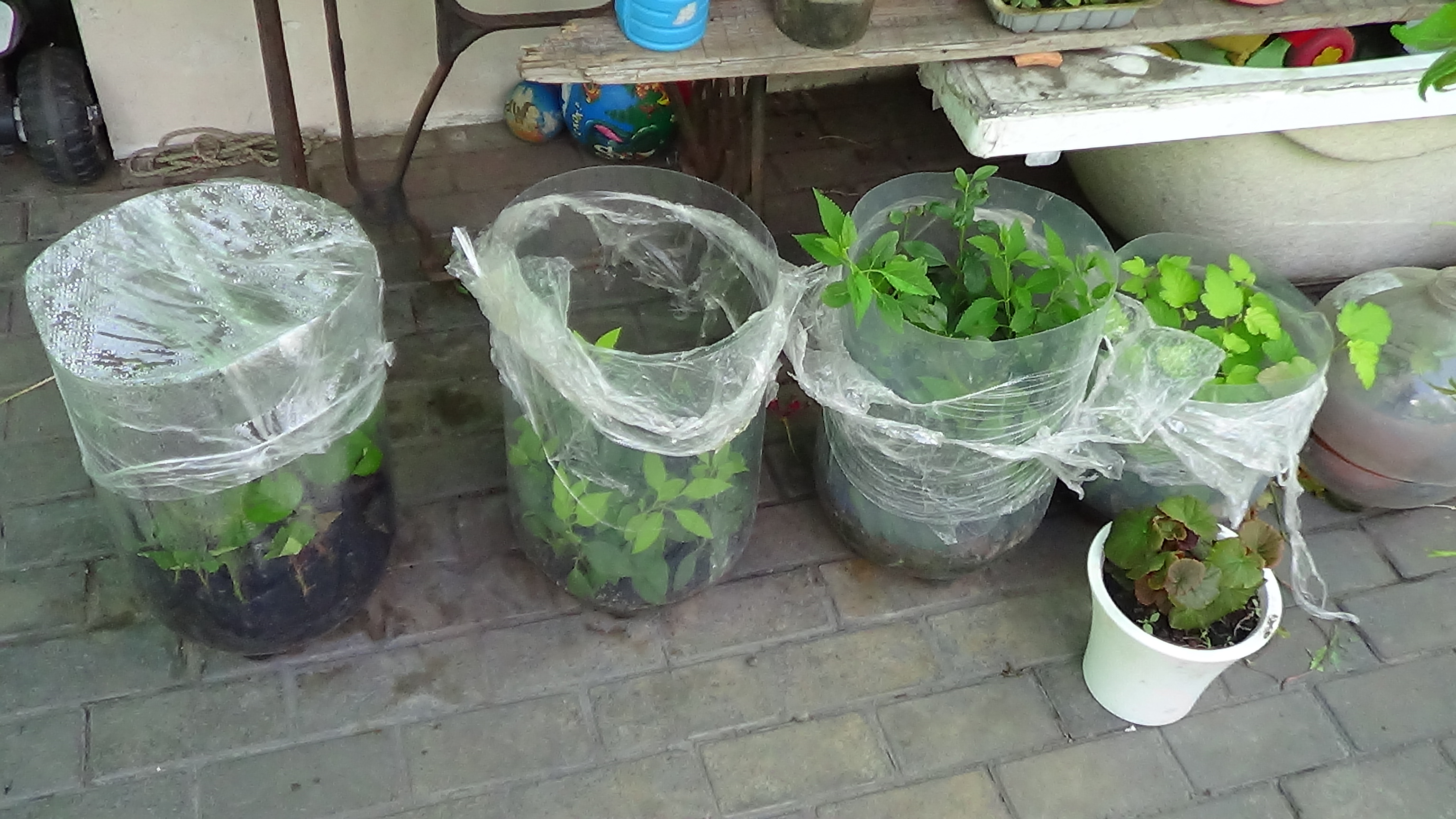 Вот пример "теплицы" для укоренения без герметичности и затенения. На открытом солнце.