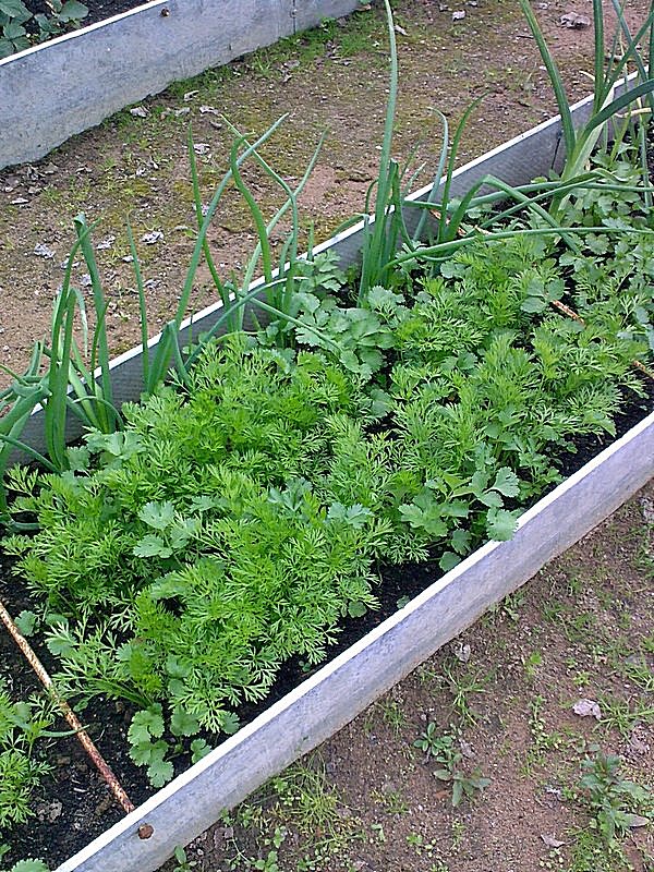 Часть морковки ( Канада) с самосевом кориандра)) Ураган был - лук немного поломало..