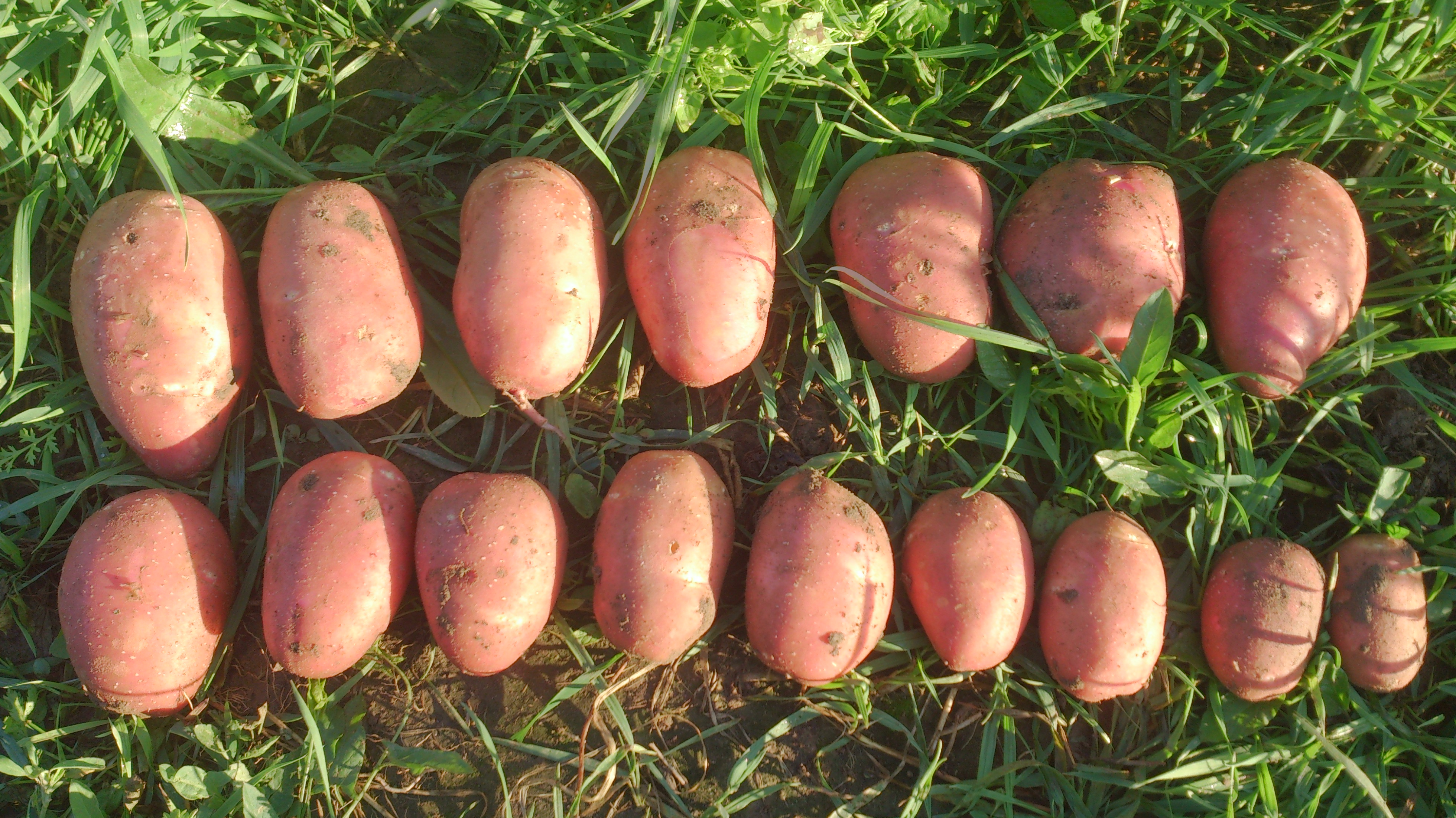 Категория семенного материала: Скарб брал на рынке в 10году, Скарлет и неизвестный сорт с рыжей кожурой еще раньше, Галу этой весной там же. Скарб весь не взвешивал, но выборочное взвешивание давало 5 кг с квадрата. Галу сажал на пробу 20 клубнями, Скарлет 10, а рыжий 6. На них урожайность не меньше. Жалею, что не посадил Здабытак. Он в дождливый год давал ещё больше. Посадил его 1 августа, но сейчас сухо. В прошлом году сажал его также. Дал урожайность к первому серьезному заморозку в октябре 2, 5 кг с квадрата.