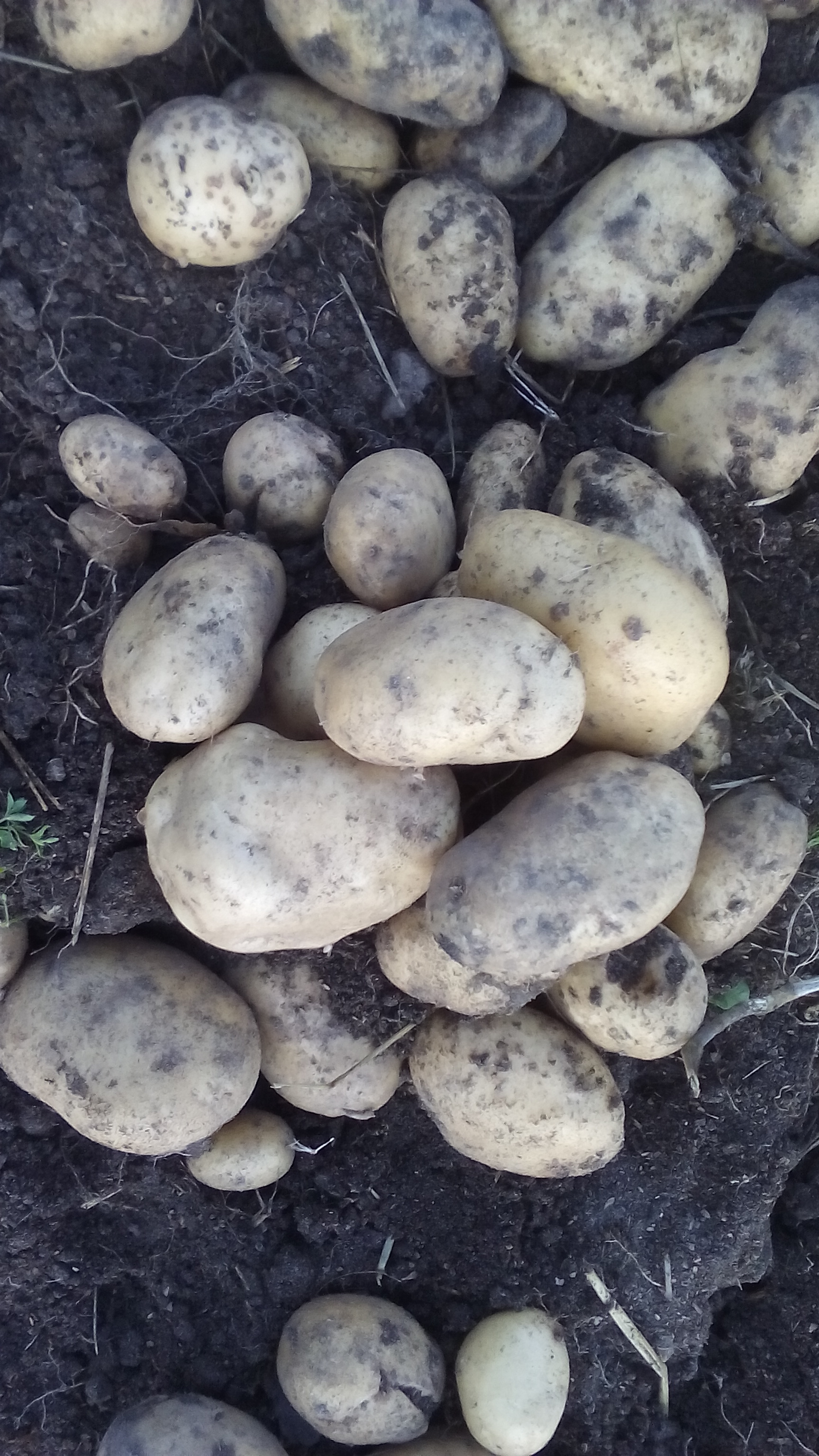 Хотела промолчать, но не могу , иной раз выговоришься и полегчает. Начали копать ранние сорта картошки, потому что ботва черная давно. Короче год у нас провальный, такой мелочи давно не выращивали, фитофтора не дала нарастить клубни. Не было б так обидно, если б сидели и ничего не делали. А то и закупила много сортов в прошлом году, провела отбор с лучших кустов, протравила, кормила, опрыскивала, а на выходе то же самое, что и у соседа, который к ней не подходил. Короче только Метеор нарастил приличные клубни. Удивил Жуковский ранний. Посаженный пораньше на летнее потребление выдал приличный урожай, а через три метра, немного позже, один горох,просто шок! В то же время Снегирь был мелкий в прошлом году, а в этом покрупнее, средний получился. Романо - горох, Удача тоже не пошла. Сантэ мелочь, загнулся первый. Ред скарлет средненько на фоне других гороховых . Еще пару сортов глянули, там тоже слабо, но пока ботва немного держится, пусть стоит, мож чего нарастет еще.