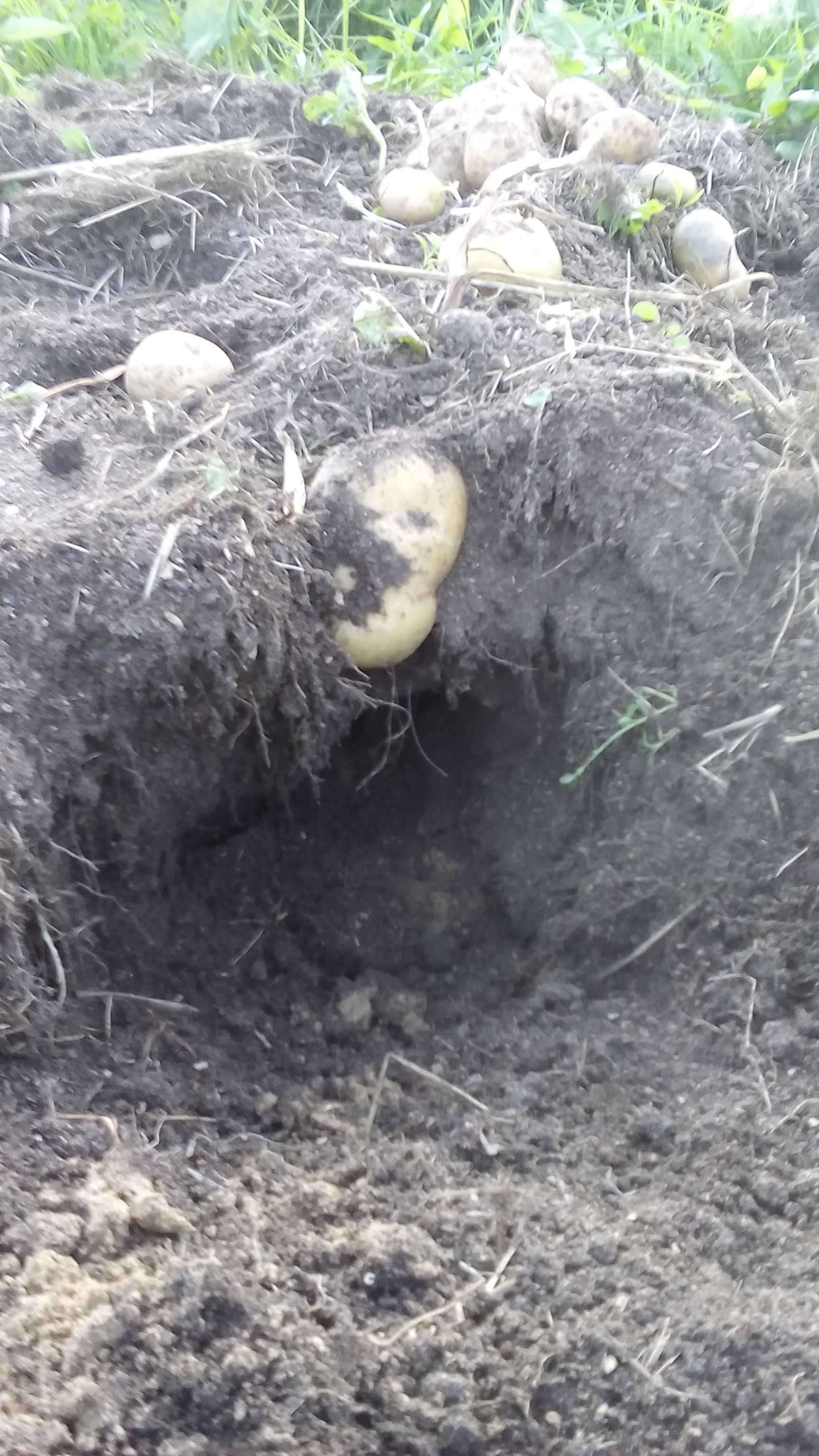 Сочувствую всем у кого не урожай. Этот сезон действительно и для меня стал самым тяжёлым. Вчера выкопал последние 25 метров борозды. Картофель в среднем помельче уродился в этом году. Мои затраты на НУМ полностью себя оправдали. В июне я его на перцы перекинул и огурцы. Уражайность тоже порадовала, хоть и без рекордов. Сегодня посадил десяток кустиков - пророщенных клубней с маленькими клубеньками. Может что и вырастет.