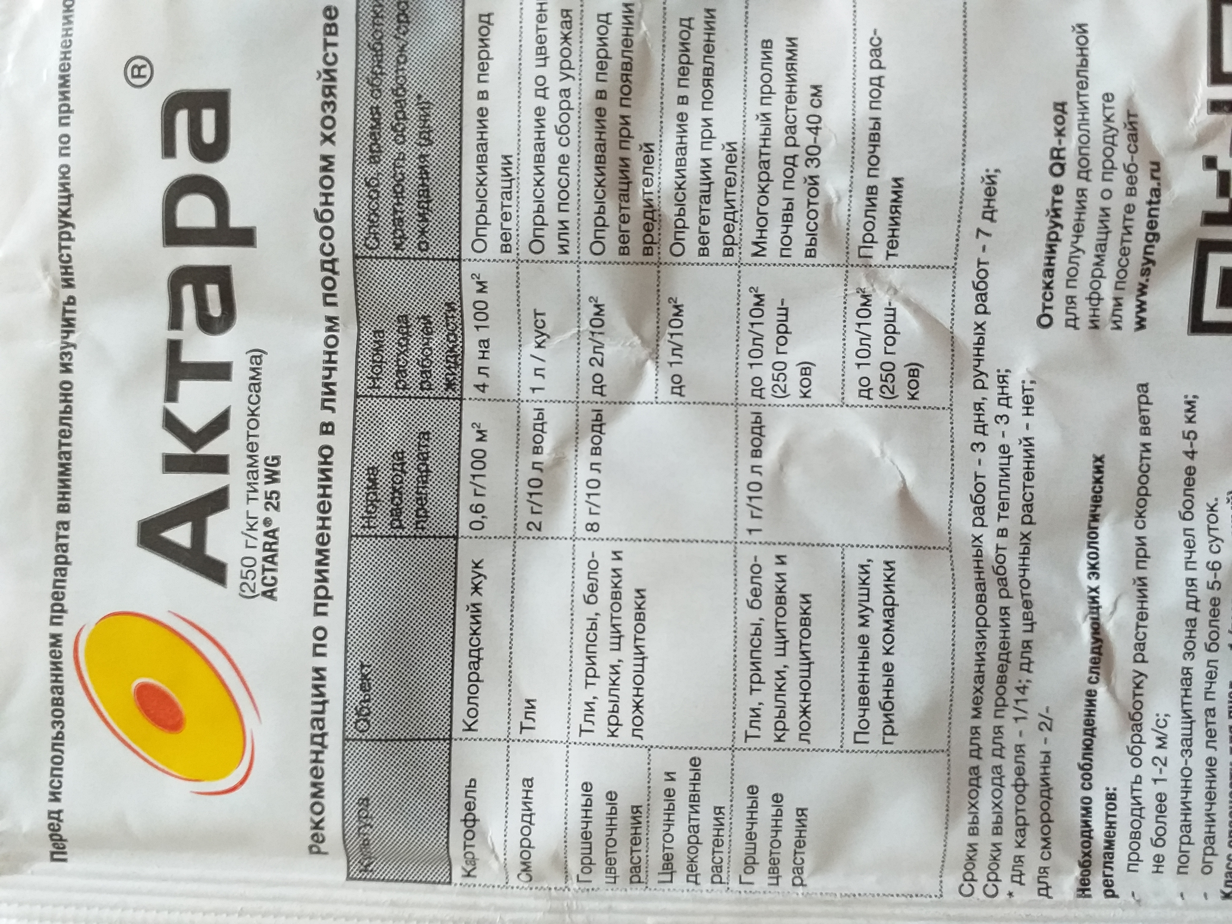 Пакетика актары 4г должно хватить на 14 кг клубней.
