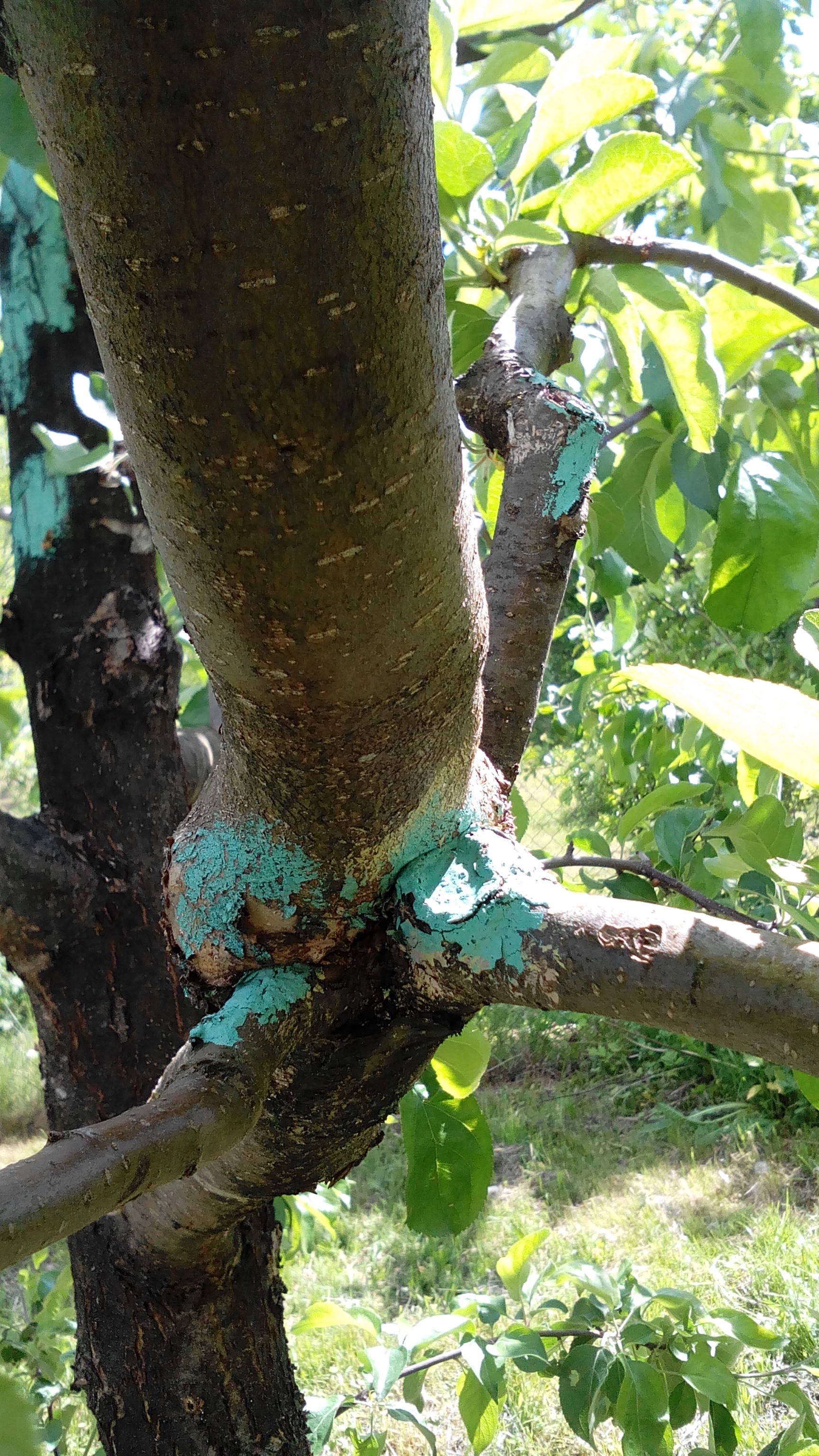 Вот про перепрививку этой 20 летней яблони писал некоторое время назад. Для масштаба поставлен сосед ростом 170 см.