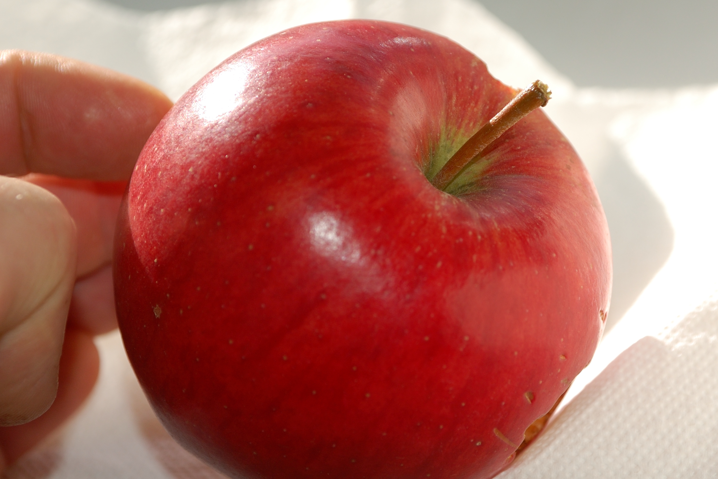 Угостили яблочком неизвестного сорта. Вкус описать сложно, но я попробую: сочный, но не сильно, то есть сок не брызгает, чувствуется, что яблоко видимо зимнее и ещё не дозрело, больше сладкое чем кислое, твёрдое. Может Беркутовское?