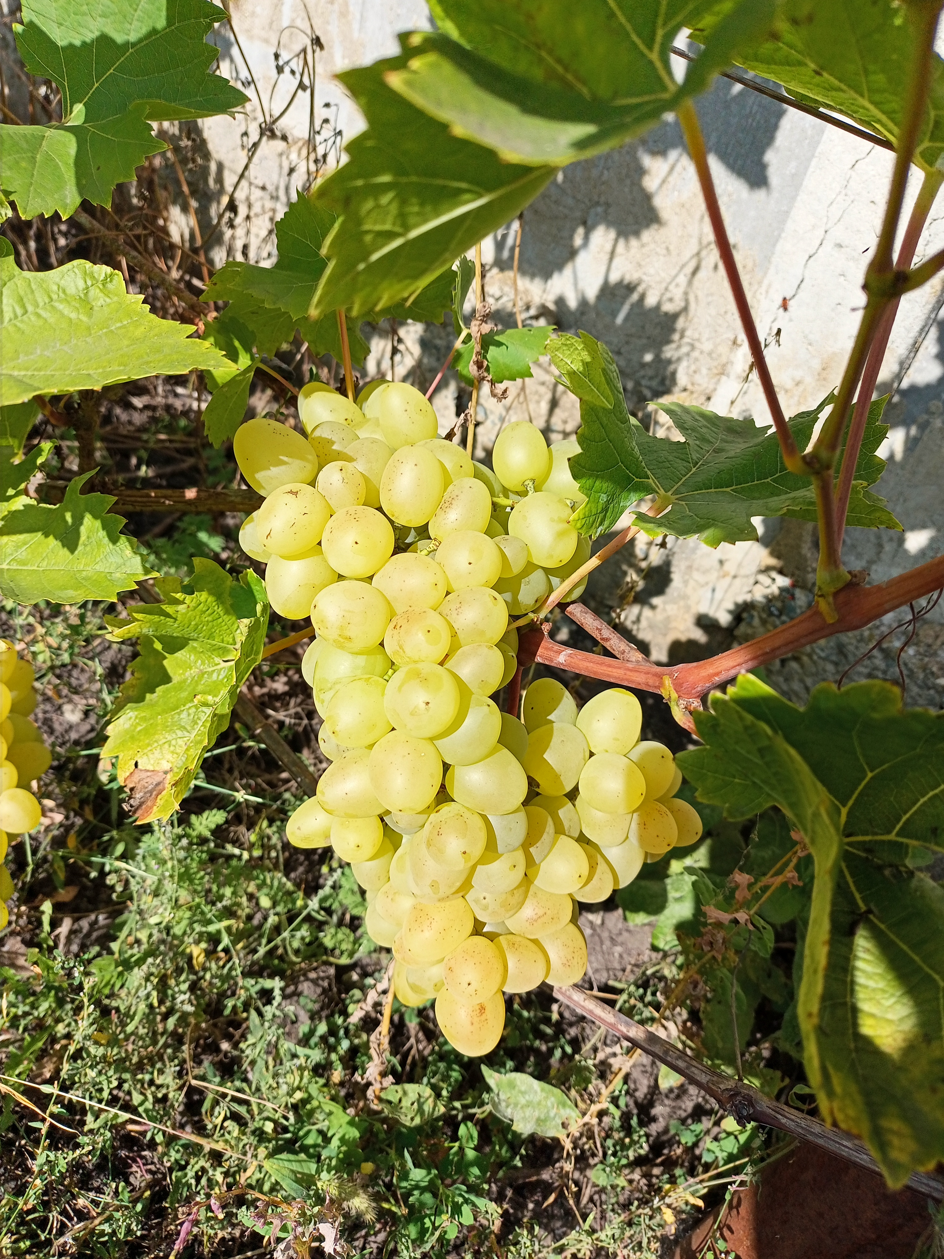 Аркадия, самая сильнорослая и урожайная, ягоды крпные. Заморозков не заметила, не болела. Сильно позже первых двух, созрела к середине сентября где-то. Вкус неплохой, сахара может маловато, но возможно я её перегрузил. Шкурка съедаемая. Лоза вызревает отлично. Грозди очень плотные, ягоды внутри давятся и гниют. И их оттуда не достать никак. Приходится ждать созревания и обрывать ягоды с грозди поштучно, выкидывая гнилые. К сожалению, к этому времени загнить успевает до четверти грозди. С учётом огромной урожайности и устойчивости к болезням, сорт оставлю, но грозди буду прореживать сразу после опыления, чтобы ягоды не давились.