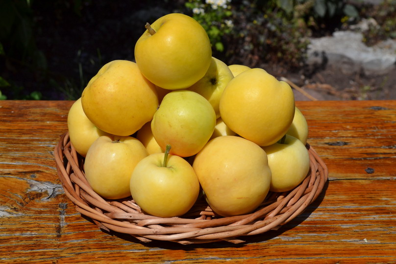 "Мякоть желто-белая или кремового оттенка, нежная, рыхловатая, десертного винно-кисло-сладкого вкуса с ароматом."