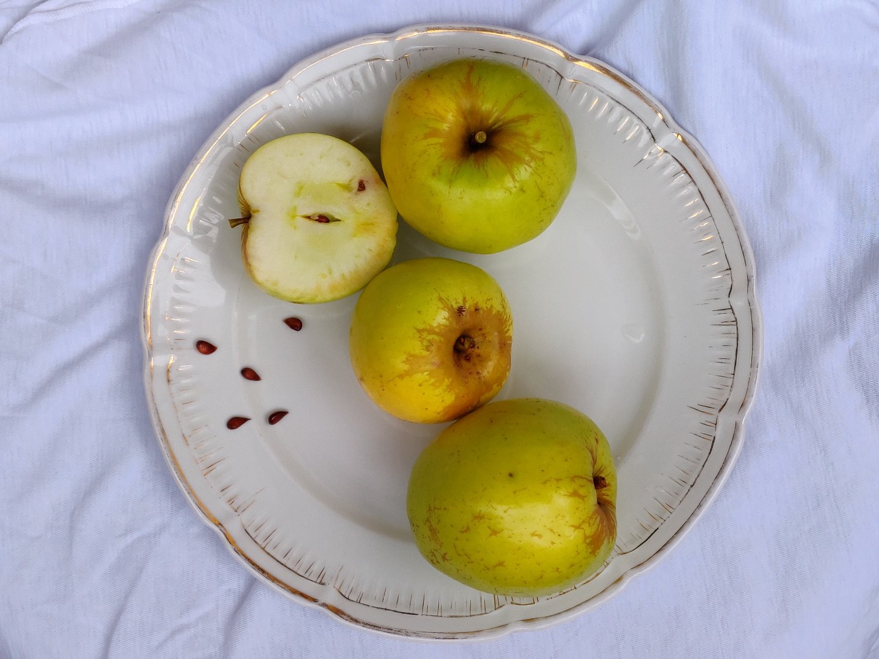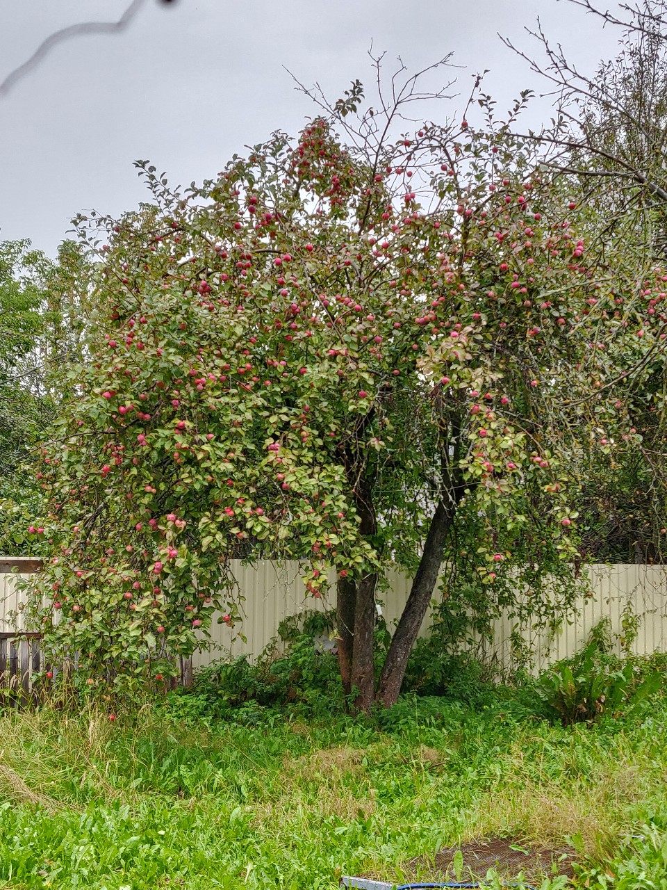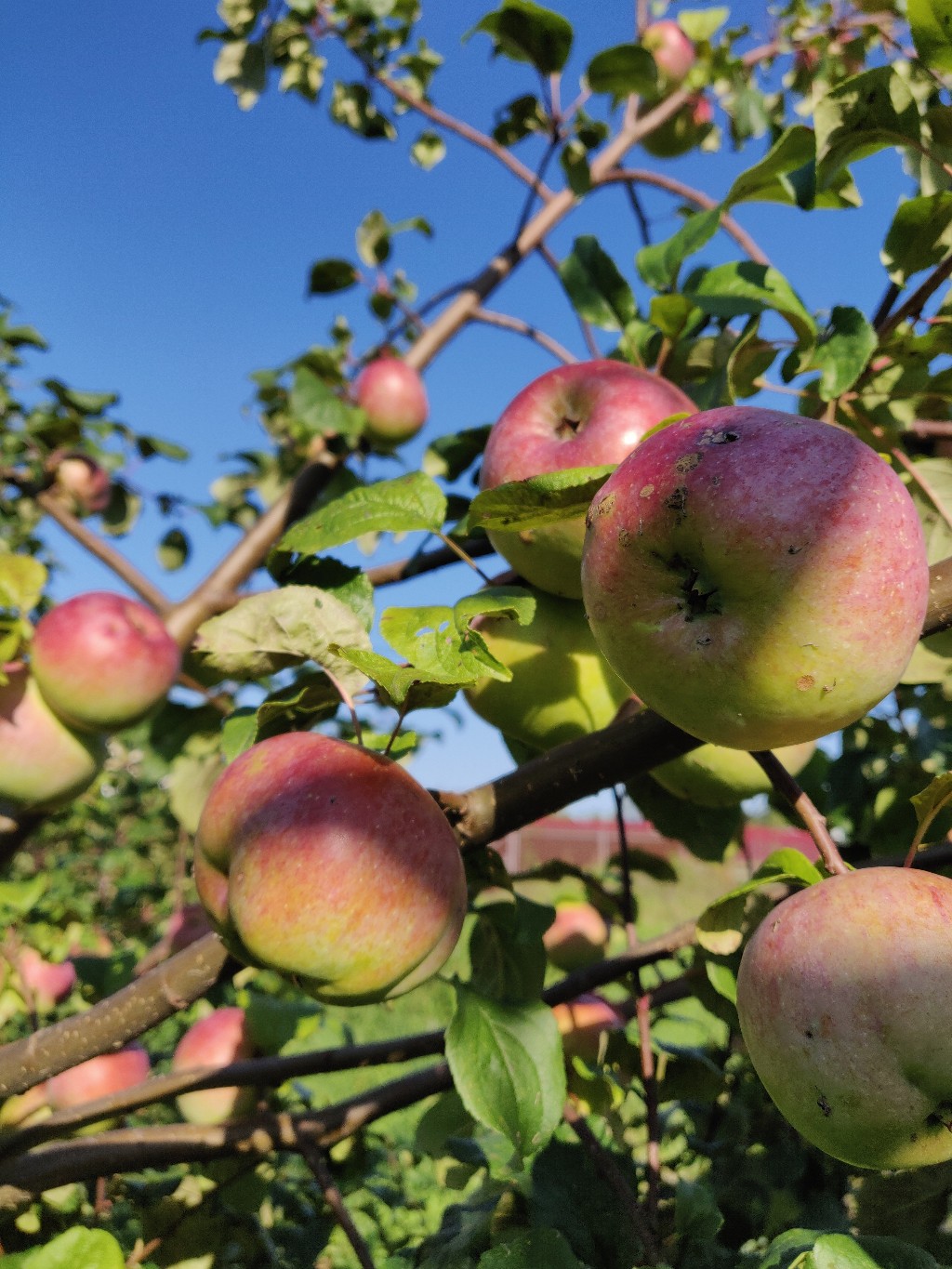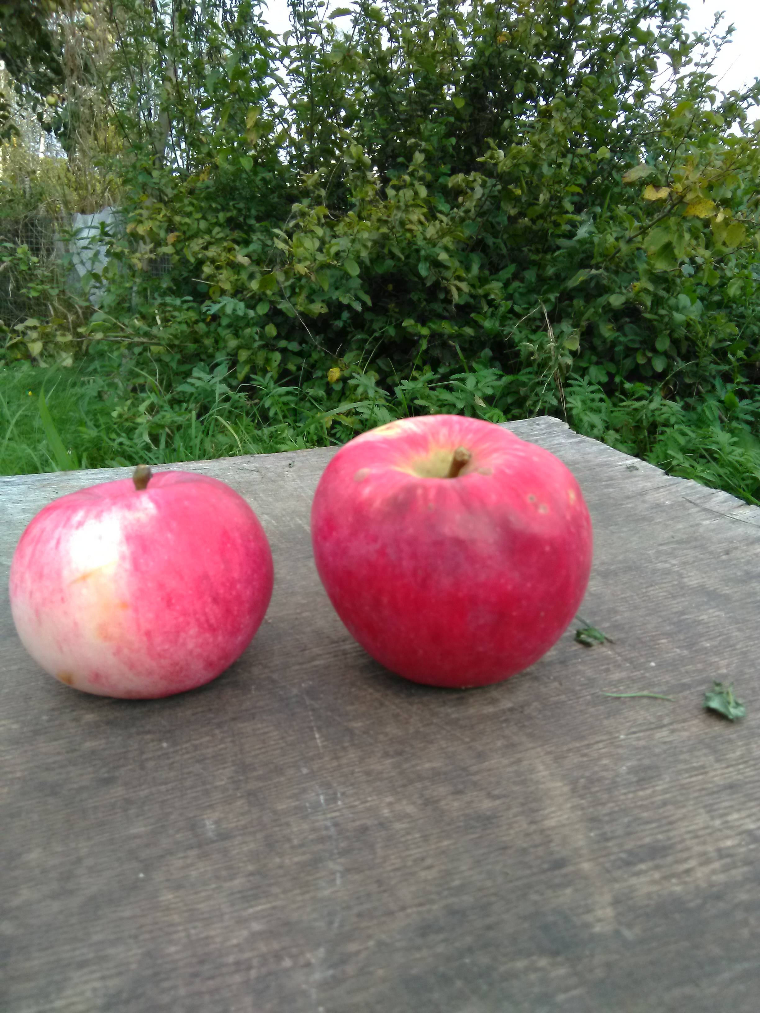 Сначала думал старая Грушовка Московская(дереву лет 50). Высота более 6 метров. Растет от земли тремя стволами. Не развалилась.Видимых зимних сильных повреждений особо не вижу. Выдерживает близкий УГВ. Плоды имеют сливающийся штриховый румянец бруснично-вишневого цвета увеличивающийся по мере созревания. Плоды слегка плоско-округлые. Мякоть даже у падалицы жёсткая в отличии от настоящей Грушовки, та и трёх дней не пролежит, если упадет - все в кашу. Эта по прежнему жесткая. Плодожоркой и паршой повреждена умерено. Диаметр плодов(похоже измельчали с возрастом дерева) в среднем около 6 см. Вкус насыщенно сладко-кислый с лёгкой терпкостью и пряностью. Аромат от пакета с яблоками сильный яблочный слегка пряный. Сорт явно не летний, хотя созрел и осыпается. Три недели назад были кислые, неделю назад начали резко созревать и осыпаться. Семечки темные, черно-коричневые, довольно крупные, слегка граненые.