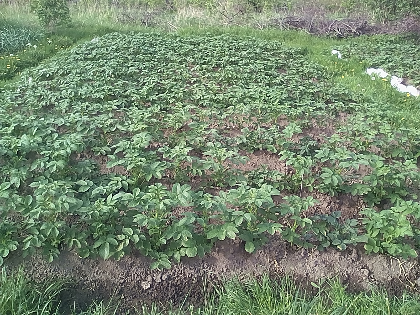 Это резервный фонд. То, что не пошло на посадку по причине слабых ростков. Недельки через две я ее обложу травой погуще. Вырастет неплохой семенной картофель для тестя.