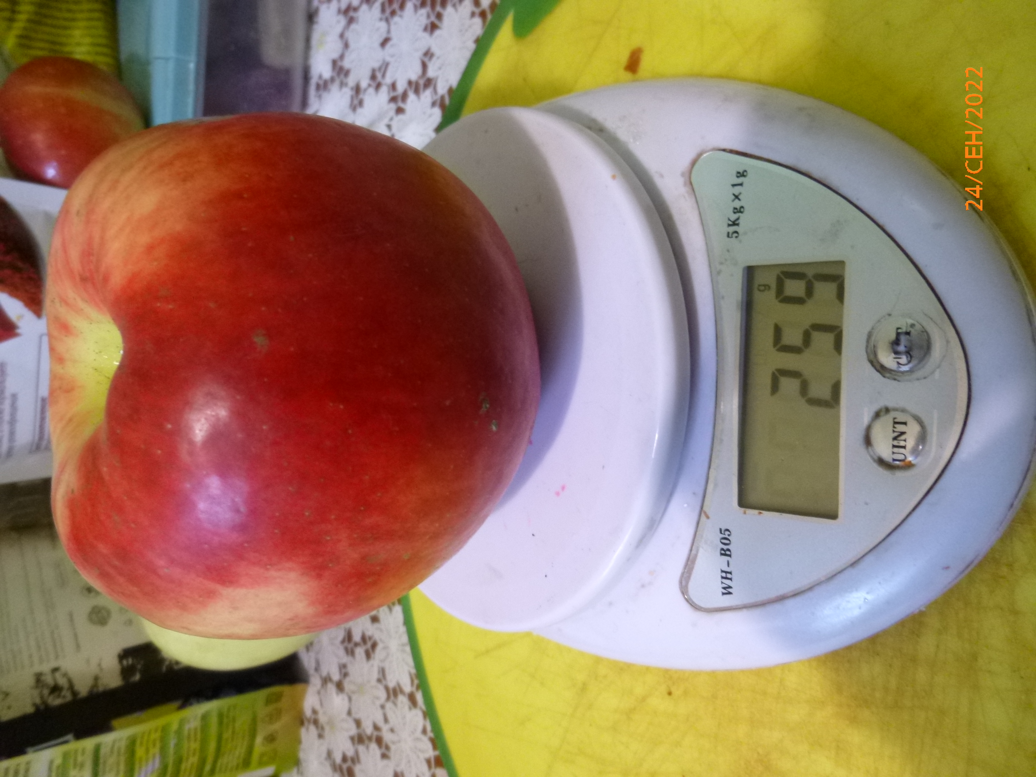 3) Форма яблок была примерно как у "Летнего полосатого" (и узор тоже полосатый, кстати), но размер в 2-3 раза крупнее (то есть, как я понимаю, >200 г.)